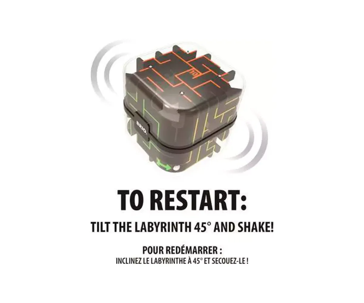 - Para reiniciar el juego inclina el laberinto 45º y agita