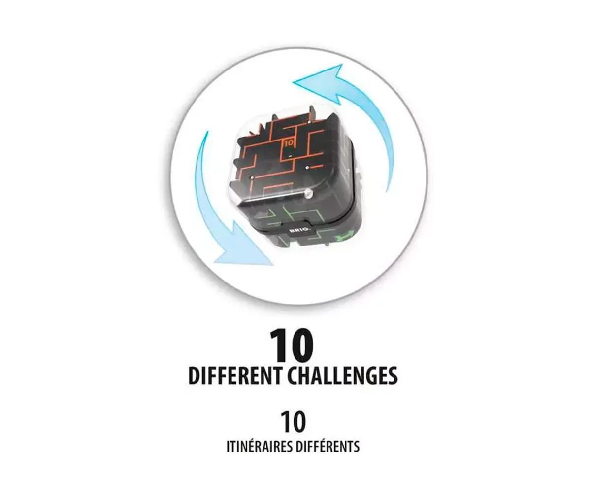 Pon a prueba tu destreza con el Laberinto 3D de BRIO, un juego de habilidad diseñado para desafiar la concentración, la paciencia y la precisión. Solo tienes que colocar la canica metálica en el punto de inicio y tratar de superar los 10 recorridos distintos, cada uno con un nivel de dificultad diferente. Para avanzar, deberás girar, inclinar y voltear el cubo con cuidado, dominando la gravedad y tu coordinación.
