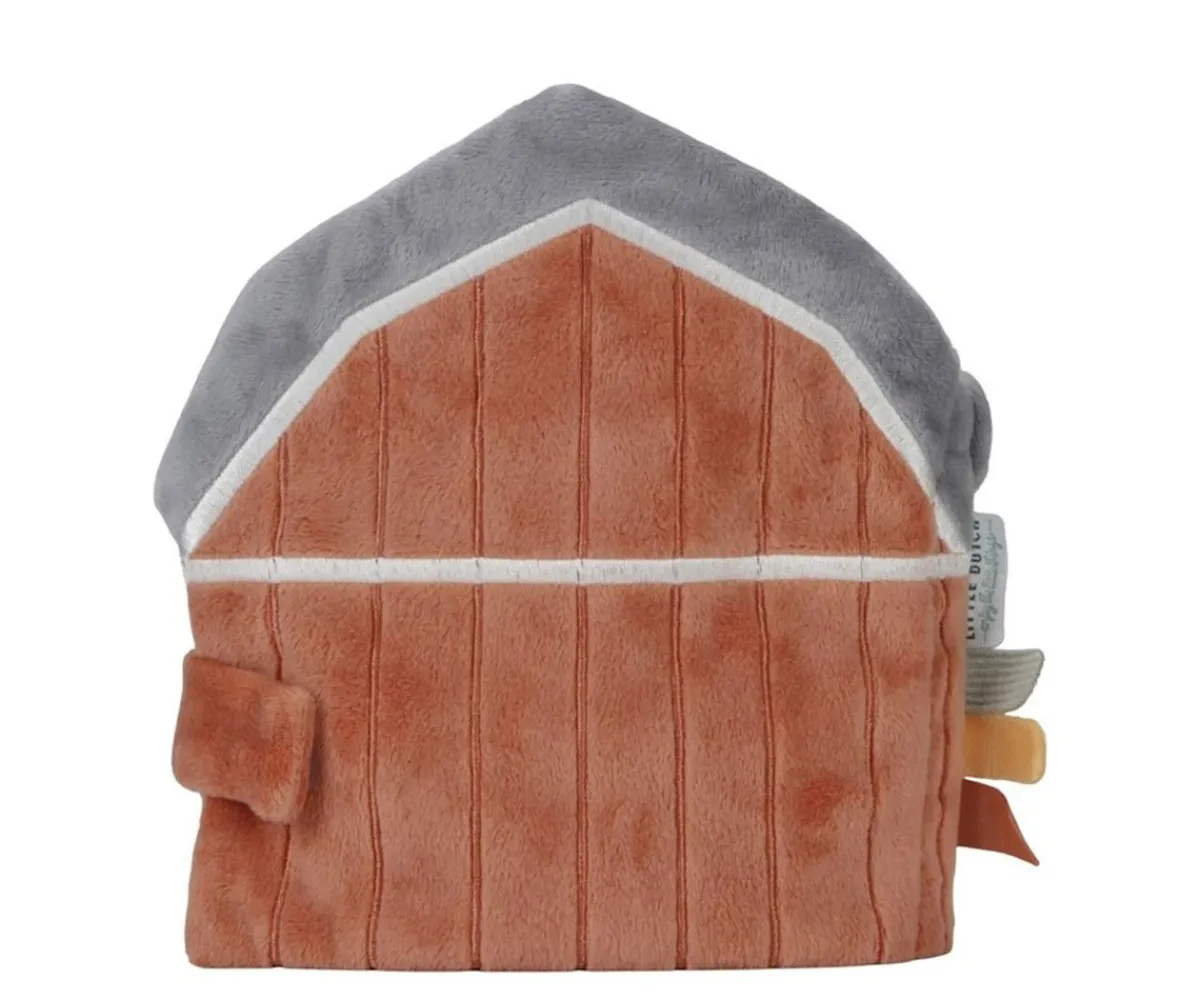Libro blandito de actividades para bebé con forma de granja. Los peques encontrarán a todos los personajes de la nueva colección Little Farm, el cerdo, la vaca, el gallo.