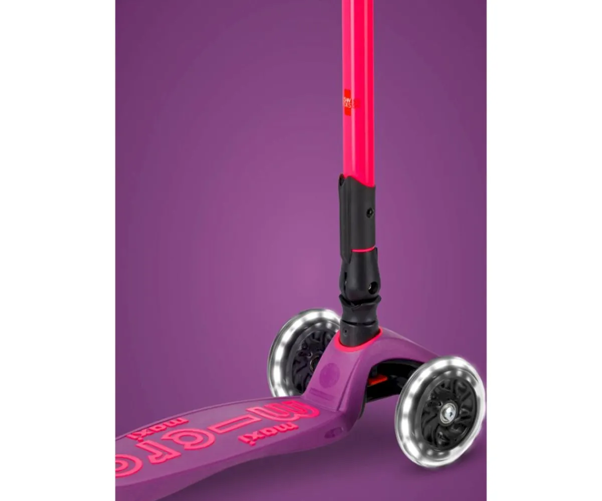 El patinete Maxi Deluxe Plegable Neon Led de Micro, está diseñado en colaboración con pediatras Suizos para ayudar en el desarrollo psicomotriz del niño.