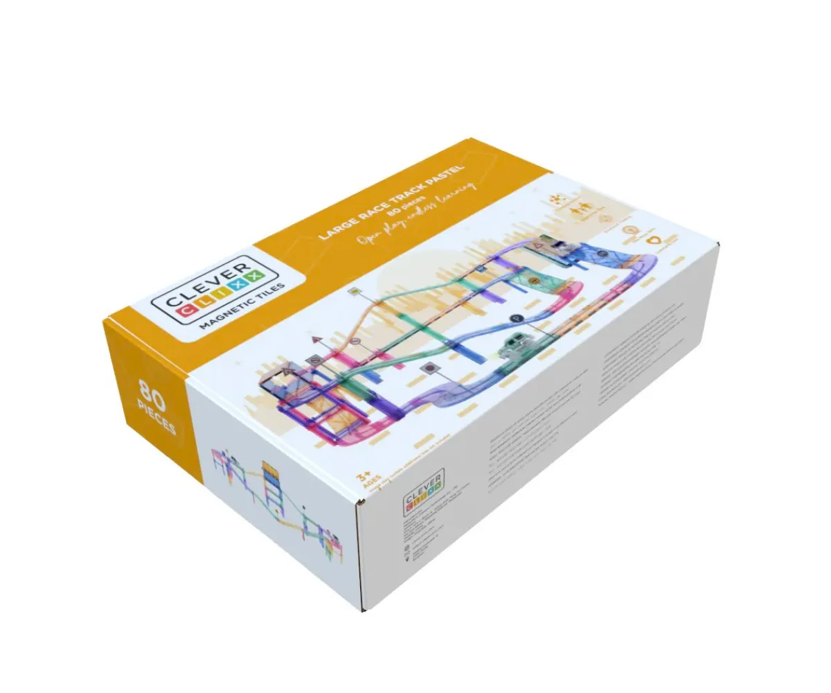 Construye las pistas de carreras mas originales y divetidas con el set Race Track Pastel de Cleverclixx. Podrás construirlas en diferentes niveles y además incluye señales de tráfico, un coche autónomo y pilares.