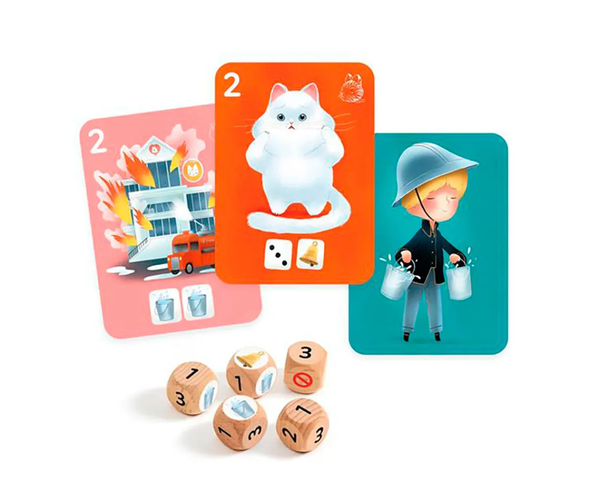 - Cada jugador lanza los dados y decide su estrategia: Salvar animales para ganar puntos o Controlar el fuego para proteger la clínica. Pero cuidado: ¡cada tirada puede darle la vuelta a la partida!