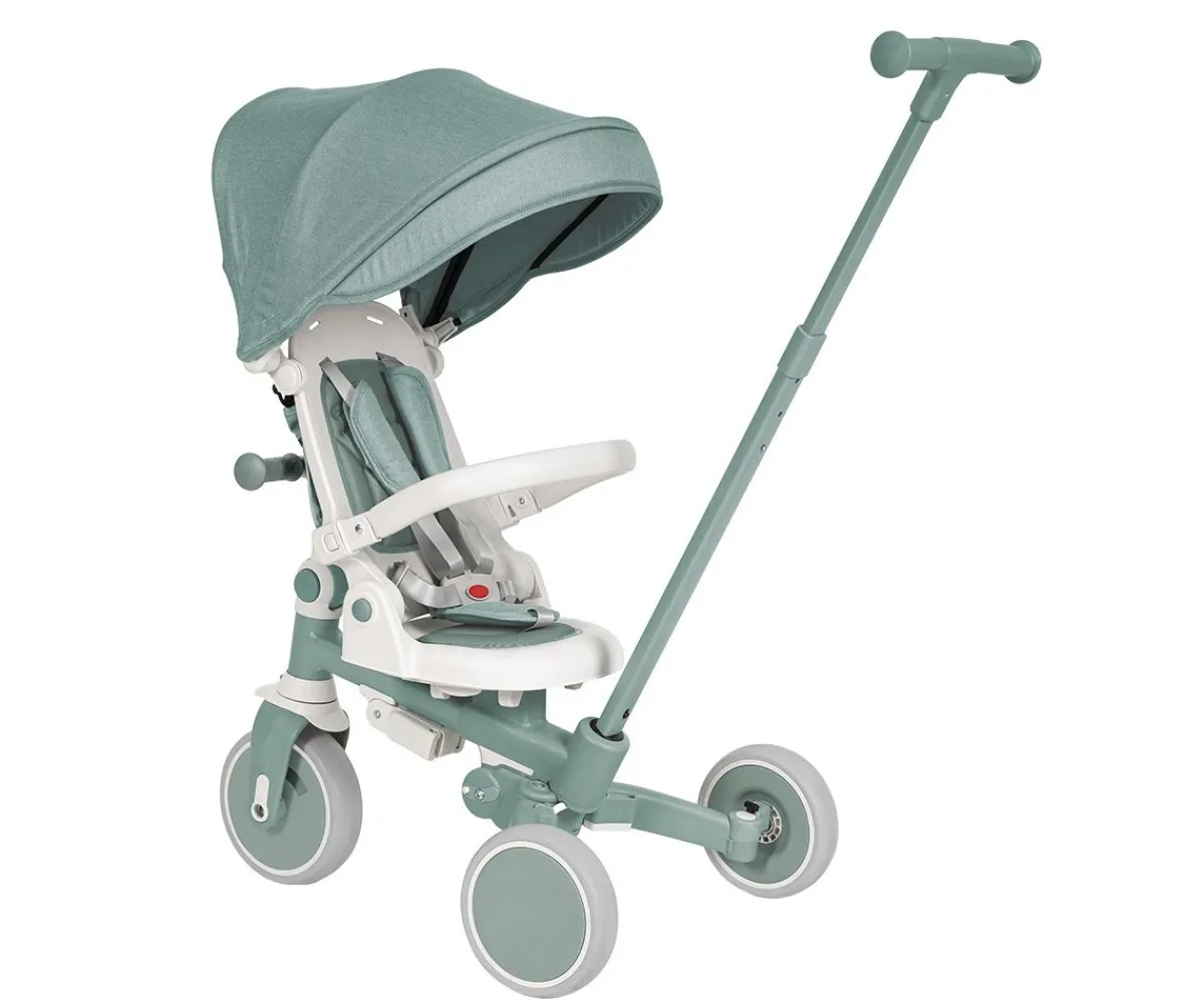 Este triciclo se irá transformando y adaptando a medida que el niño o niña crece. De triciclo a bicicleta con o sin pedales, pasando por todos los modelos necesarios para la adaptación del niño. Es adecuado a partir de los 12 meses y viene con una barra de empuje extraíble que se puede colocar en la parte posterior del triciclo para ayudar que el peque comience de manera más segura.