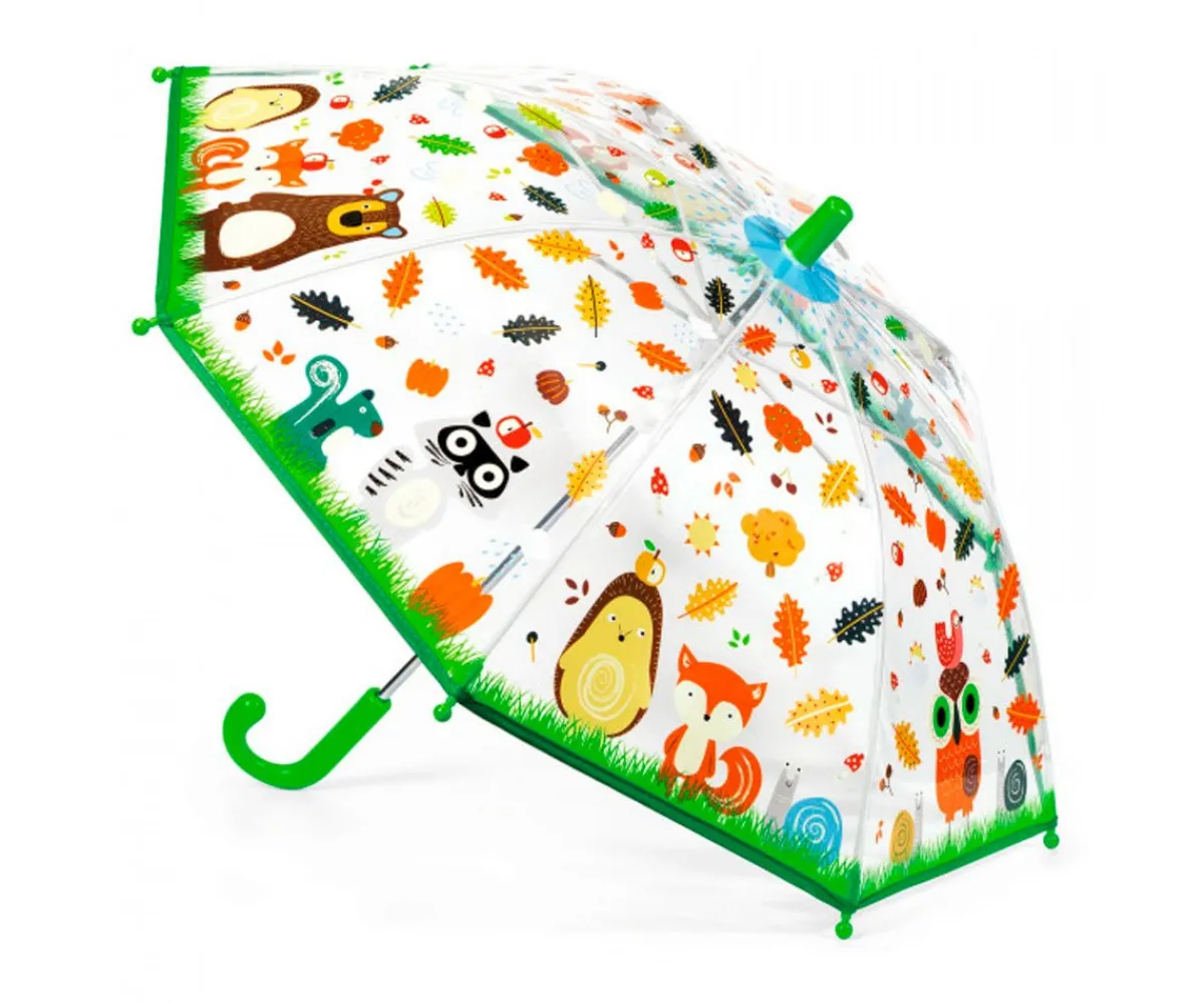 Adorable y simpático paraguas con motivos animales del bosque que los peques podrán llevar para alegrar cualquier día de lluvia.