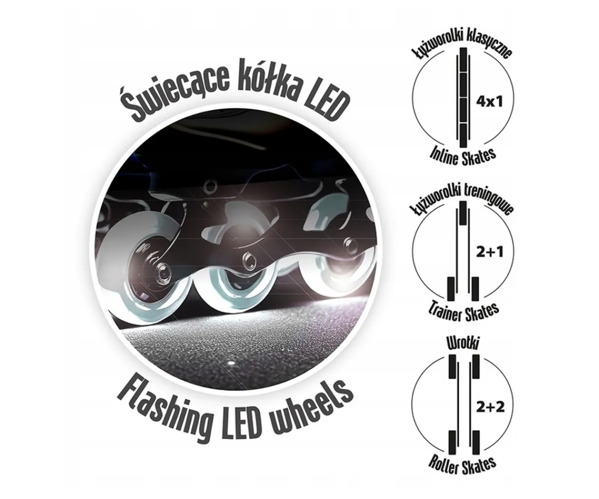 Los patines 3 en 1 Frozen de Seven Polska ofrecen versatilidad, comodidad y seguridad en un solo producto. Con un sistema convertible que permite utilizarlos como patines en línea, patines de entrenamiento o wrotki (patines tipo quad), se adaptan al nivel de cada niño y crecen con él gracias a su tamaño regulable.