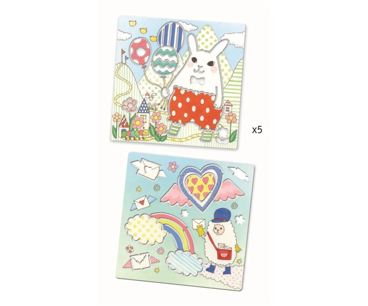 Este set incluye 5 plantillas ilustradas sobre el tema Kawaii de Djeco. Sólo necesitas seguir las hendiduras con el lápiz para trazar cada plantilla con precisión. Las plantillas son de plástico, lavables y muy resistentes, ¡perfectas para usarlas una y otra vez!