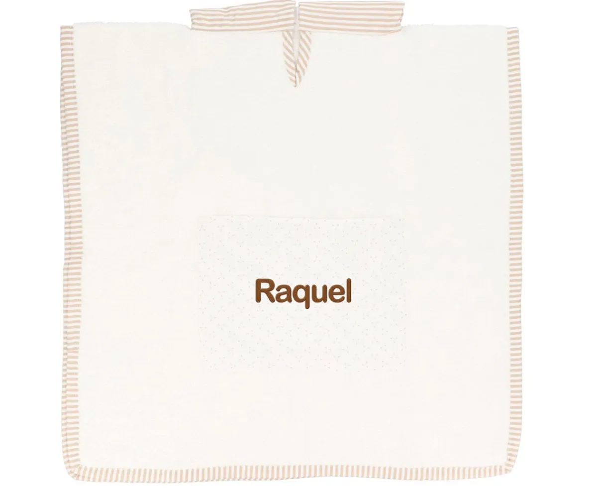 Con este poncho de Cristina de Jos´h, los peques estarán bien arropaditos cuando salgan del baño. Este poncho cuenta con un bolsillo deltantero que se puede personalizar con el nombre del peque para hacerlo único y especial.