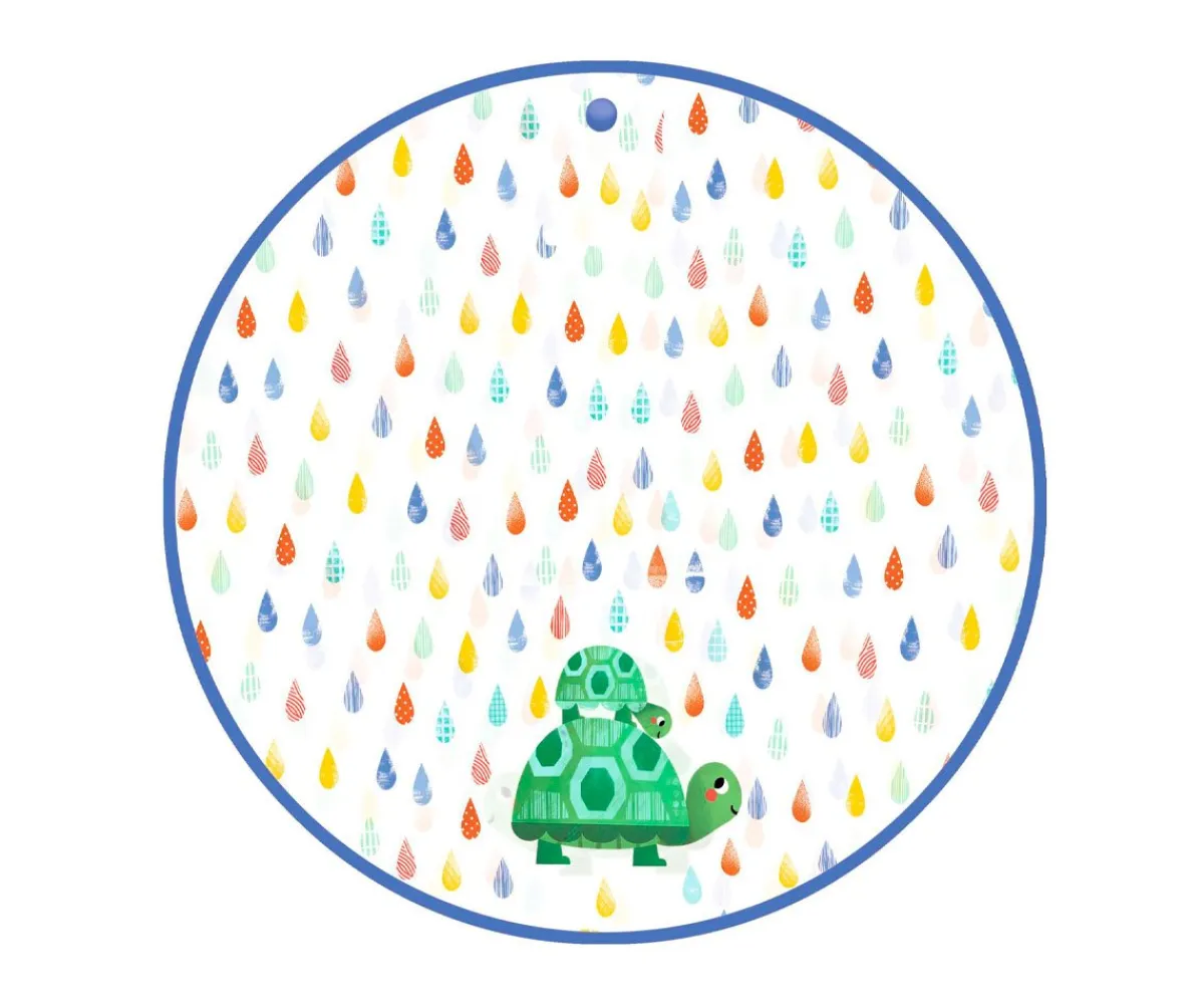 Original poncho con capucha semitransparente que alegrará los paseos bajo la lluvia. Es muy fácil de poner y quitar y aporta gran libertad de movimiento a los peques gracias a los cierres a presión en cuello y mangas.