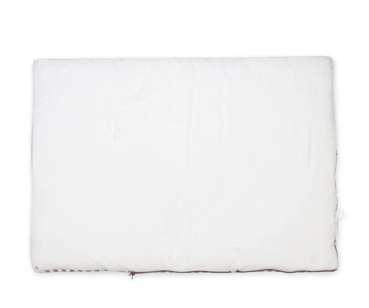 El saco arrullo Cherry Rayas de Pasito a Pasito envuelve a tu bebé con la máxima suavidad y elegancia. Fabricado en muselina 100% algodón con estampado floral y forro interior de bambú y algodón, es perfecto para los primeros días, los paseos en el capazo o como manta en la cuna.