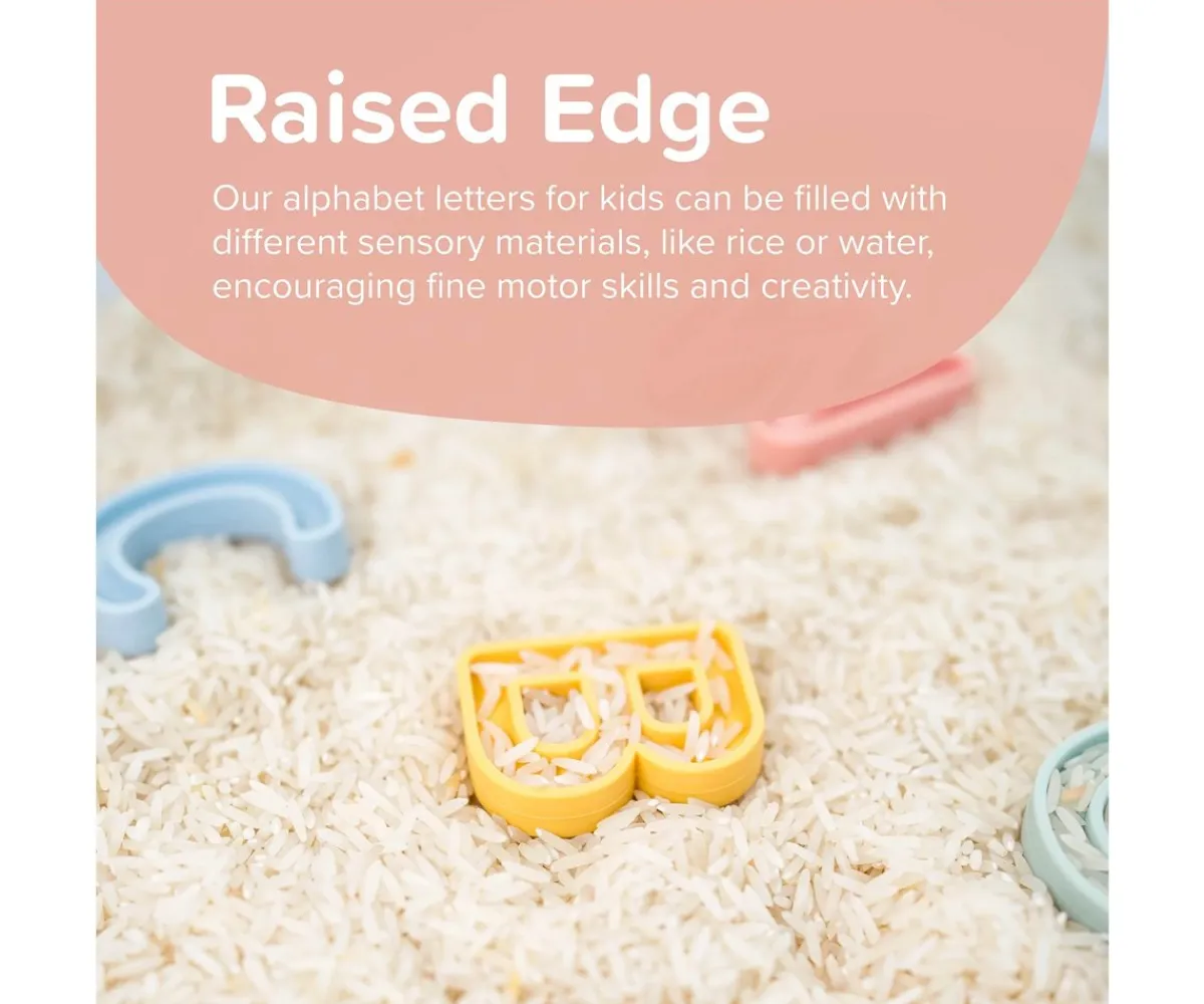 Son resistentes al agua, y perfectas para añadir a cualquier juego sensorial ya sea en una mesa o bandeja en la que podrás colocar las letras junto a más accesorios sensoriales.Gracias a su perfil empotrado podrás rellenarlas con plastilina y otros materiales, como agua o arroz.