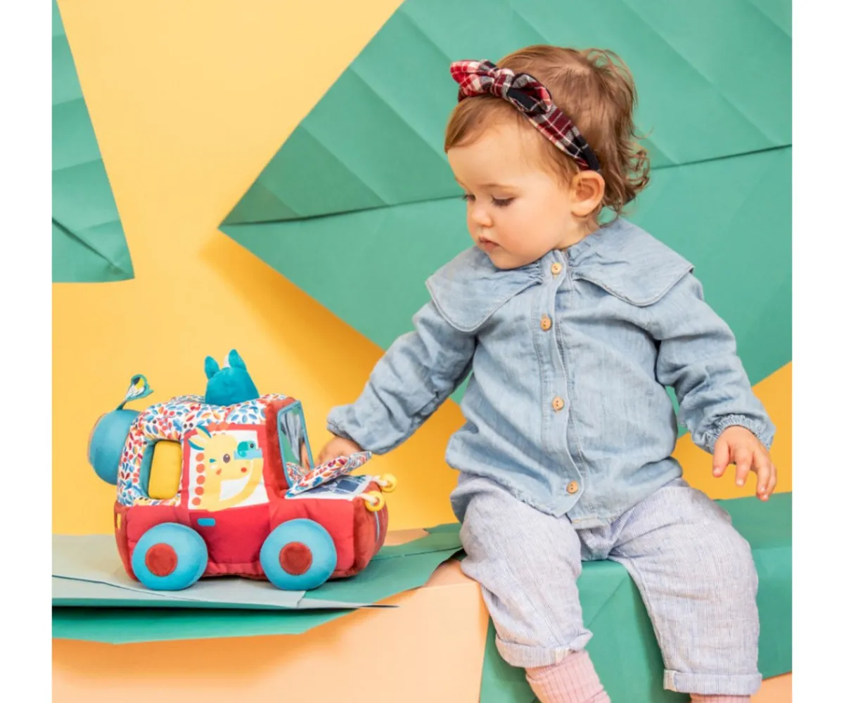 Con Jack al volante y Marius explorando desde el techo, el coche de safari está listo para la aventura. Sus colores vibrantes y texturas variadas ofrecen una experiencia sensorial única. Este juguete está lleno de actividades que invitan a los pequeños a desarrollar sus sentidos, creatividad y curiosidad.