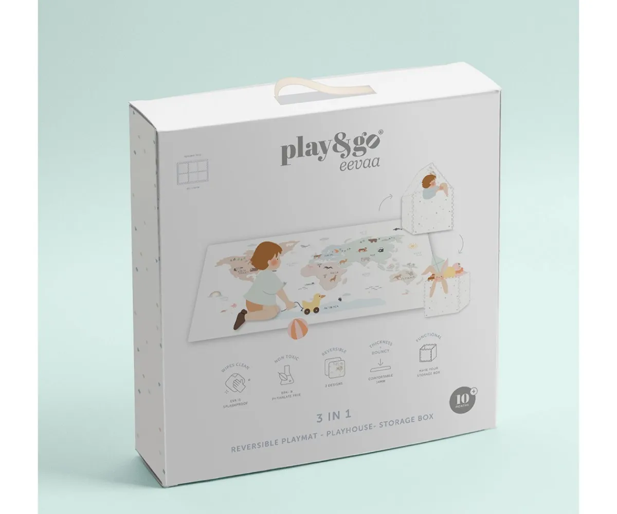 Esta versátil alfombra es un 2 en 1: puede ser utilizado como una alfombra de juegos para tus peques y, una vez terminado el juego, transformarse en una caja de almacenamiento para guardar sus juguetes.
