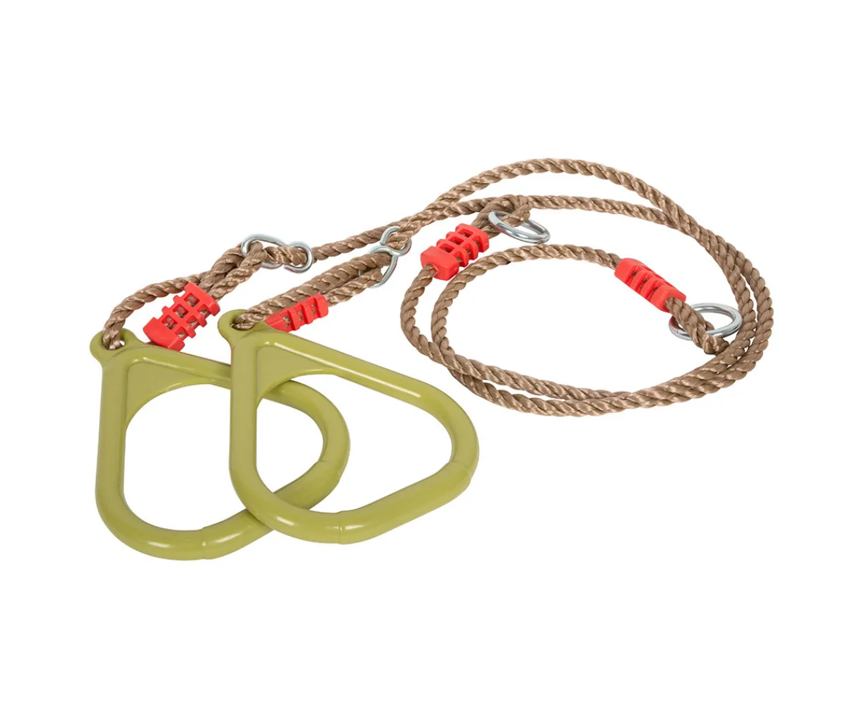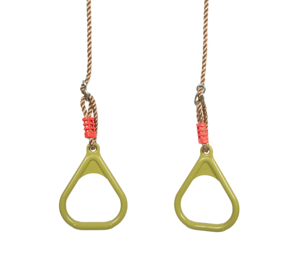 Fabricadas con plástico resistente y duradero, estas anillas están diseñadas para soportar hasta 100 kg de peso y pueden utilizarse tanto en interiores como en exteriores. Sus cuerdas ajustables en longitud permiten adaptar la altura a cada usuario, ofreciendo la máxima seguridad y comodidad durante el uso.