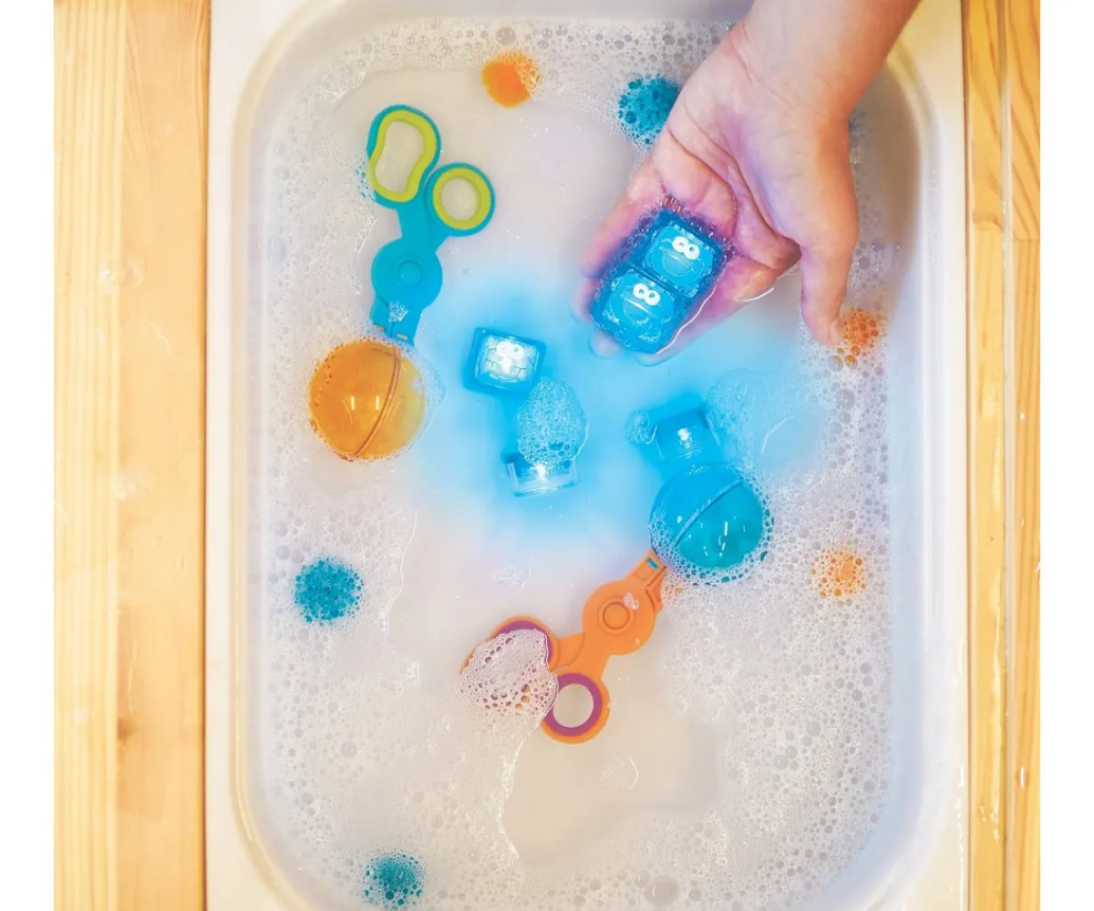 Los cubos iluminados más originales de Glo Pals decorados con Cookie Monster. Colócalos en el agua y verás como se iluminan en color azul.