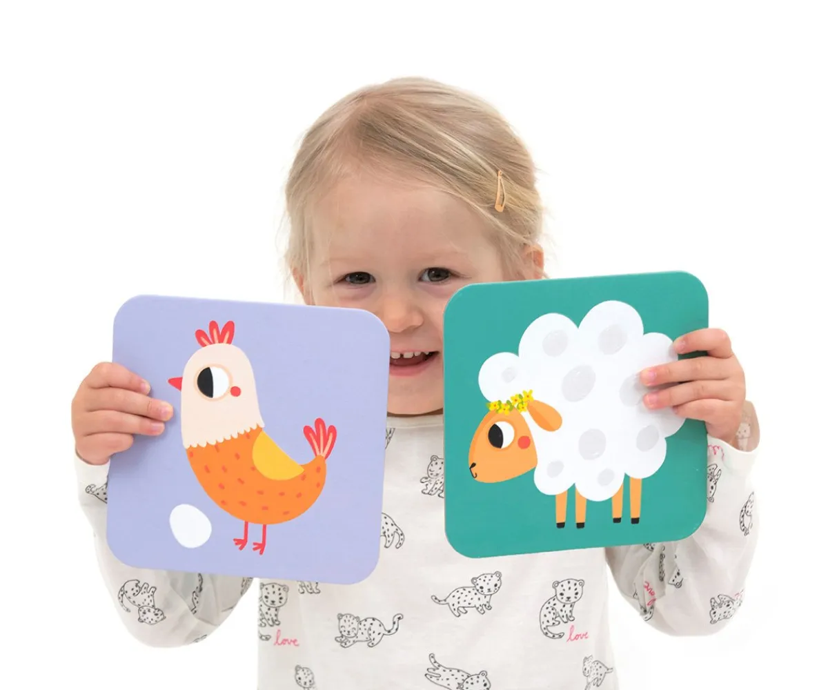 Diviértete con este memo gigante de . Incluye 24 tarjetas grandes y resistentes para jugar a emparejar los diferentes animales.