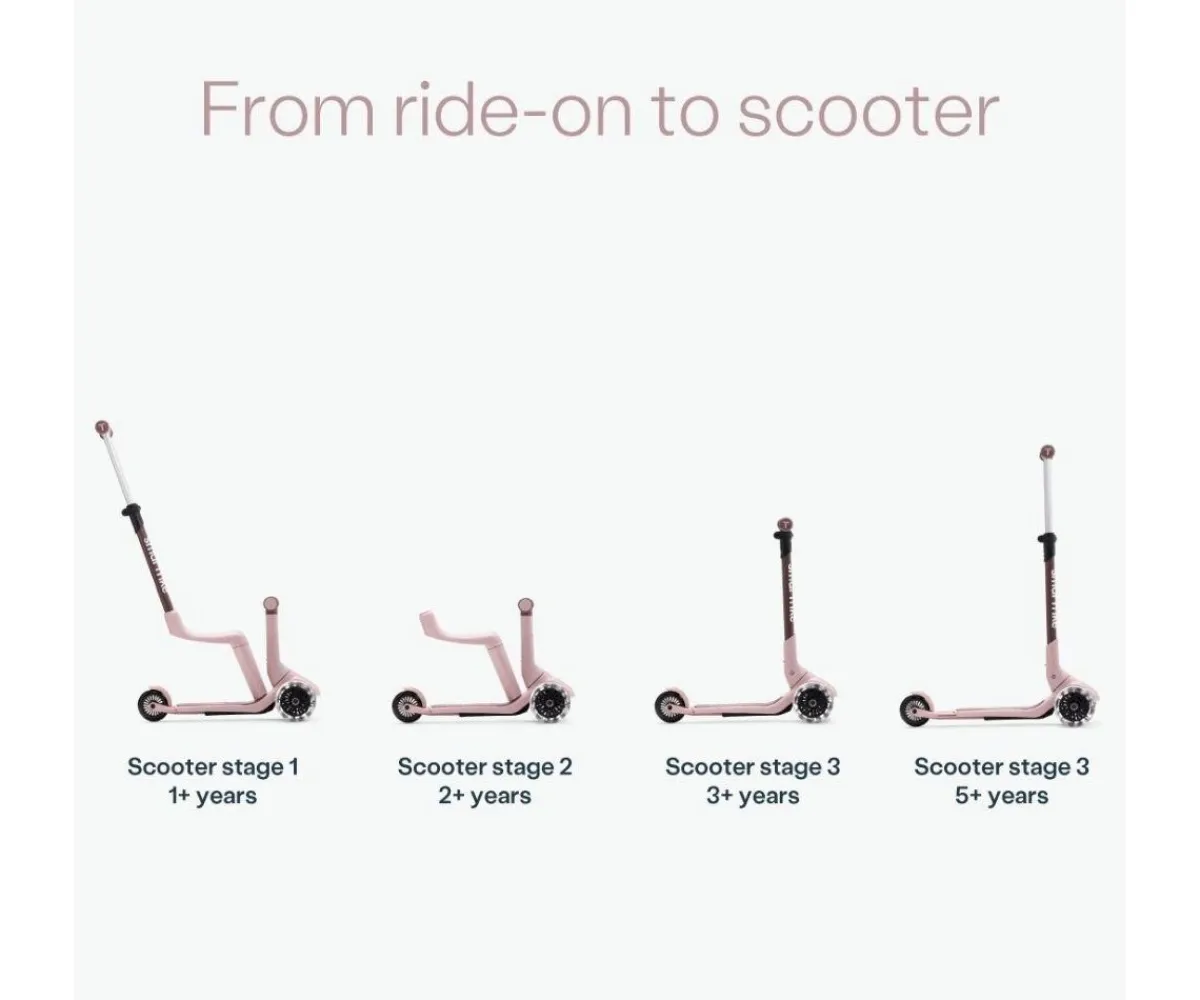 Desde una bicicleta para caminar acompañado, un scooter, hasta un patinete con manillar extensible para adaptarlo a la altura de tu peque por lo que este patinete pueden utilizarlo desde un añito hasta los 9.Cuenta con un práctico y cómodo asiento para sus dos primeras etapas.