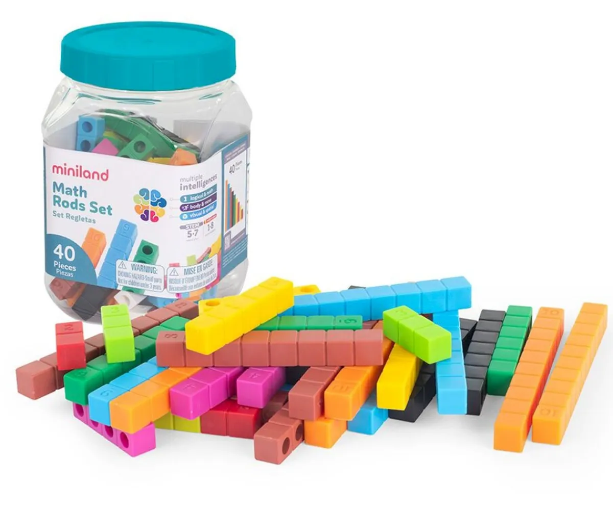 El set de varillas de colores de Miniland iniciará a los peques a través del juego y la diversión a la lógica matemática.