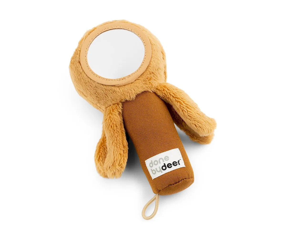 Este sonajero con espejito en forma de medusa siempre esta listo para echarte una mano,¡o siete! El sonido de arrugas que hace al ser apretado hará que despierten los sentidos de tu pequeño mientras juega