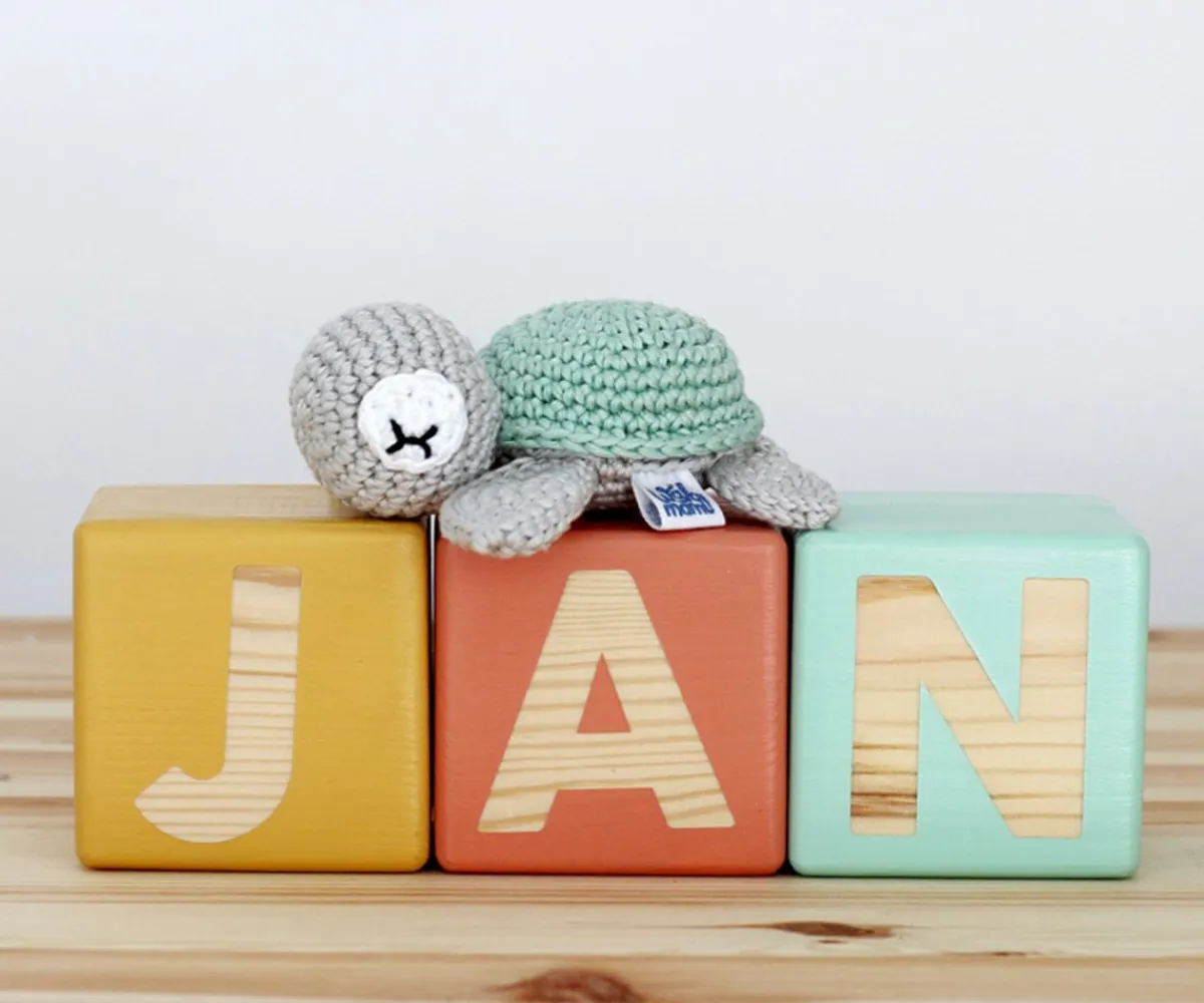 - Solo se puede elegir un color de personalización por nombre completo. Si quieres el nombre en distintos colores, tendrás que ir añadiendo a la cesta las iniciales en el color que quieras cada una. Por ejemplo: Pablo (PBO en color mostaza y luego añadir un nuevo artículo AL en color terracota)