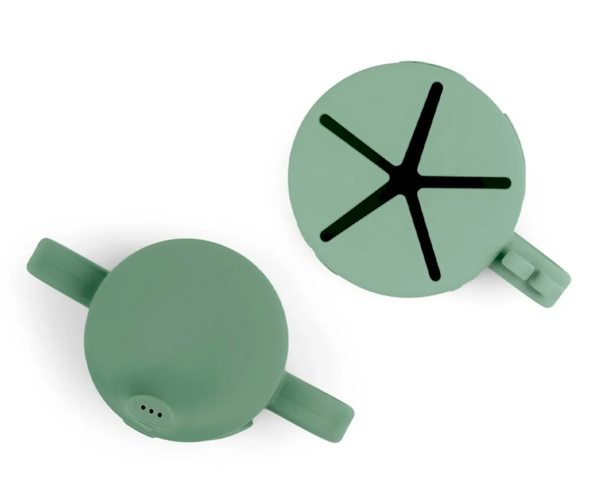 Pack de taza con asas y porta snack de tamaño perfecto para que los peques tomen confianza a la hora de tomar agua, con un divertido diseño de la colección Deer Friends. La taza con asas está fabricada en silicona de grado alimenticio por lo que es resistente a golpes y caídas. La taza de merienda es ideal para meter frutas o pequeños cortes de comida y llevarlas a todos lados.