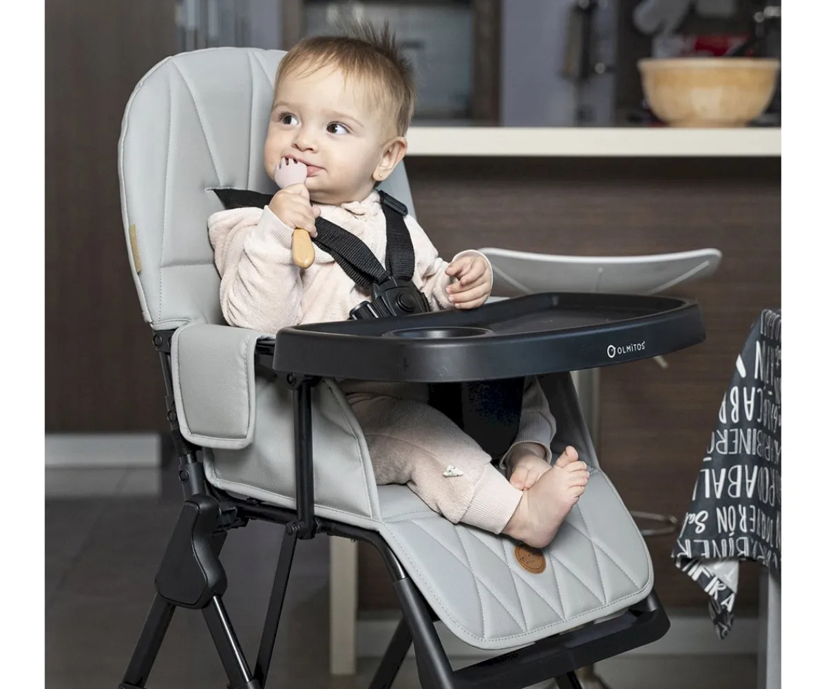 La trona Minna de Olmitos, es la solución ideal para padres que buscan funcionalidad y comodidad. Diseñada para bebés a partir de 6 meses que pueden sentarse sin ayuda, esta trona combina ligereza y robustez, lo que la convierte en una opción perfecta para el hogar. Su diseño plegable permite un almacenamiento y transporte sencillos, haciendo que cada comida sea una experiencia práctica y agradable.