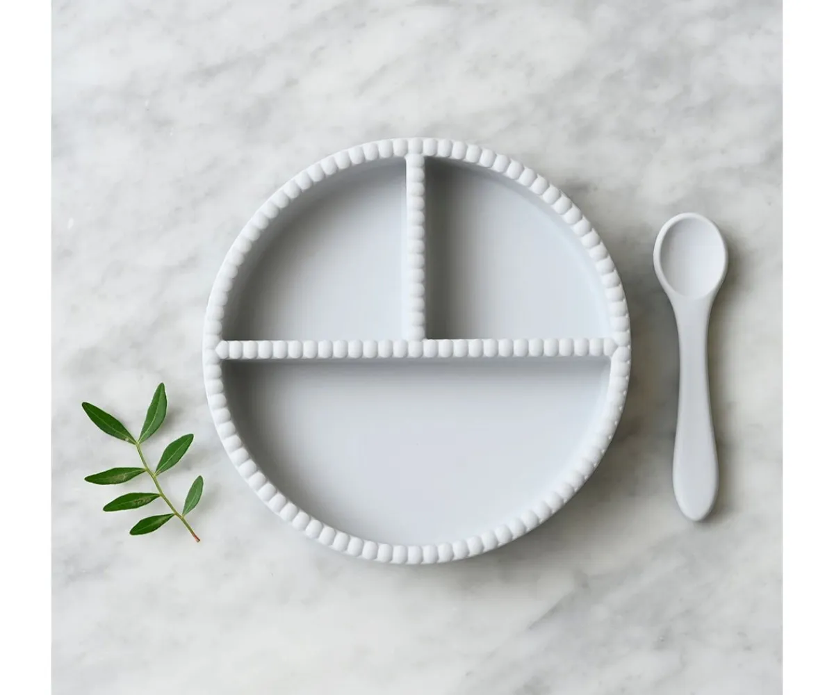 Plato con compartimentos y cuchara 100% de silicona de grado alimenticio de la colección Bubble.
