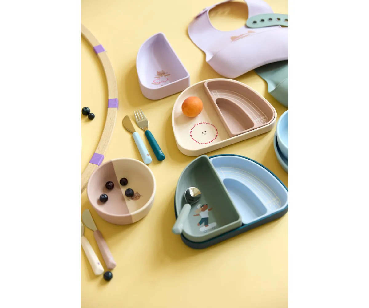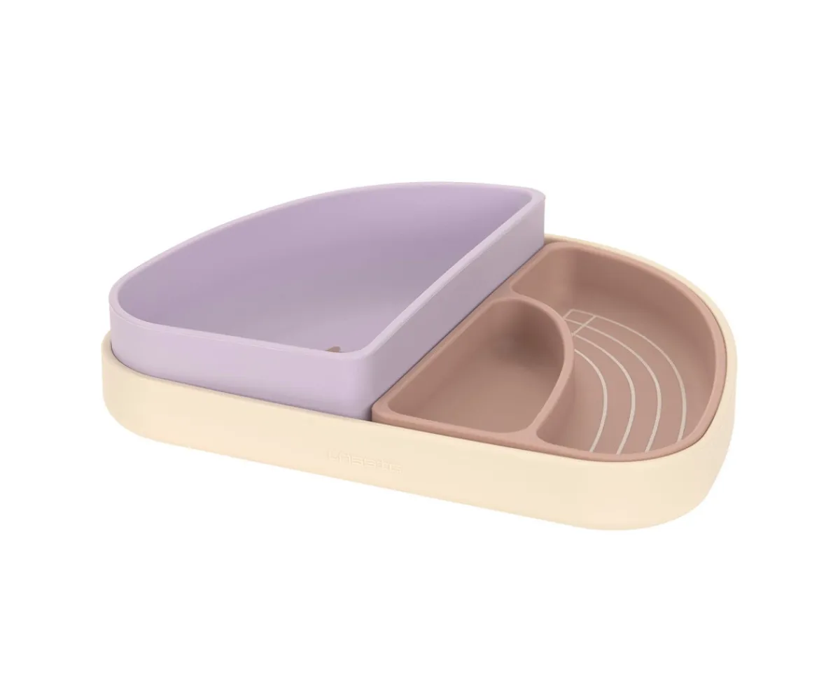 Set de 3 platos de silicona en forma de arcoíris de LÄSSIG, se pueden dividir en 2 cuencos y un plato de forma individual. Fácil de apilar y perfectos para que los peques coman de forma autónoma.