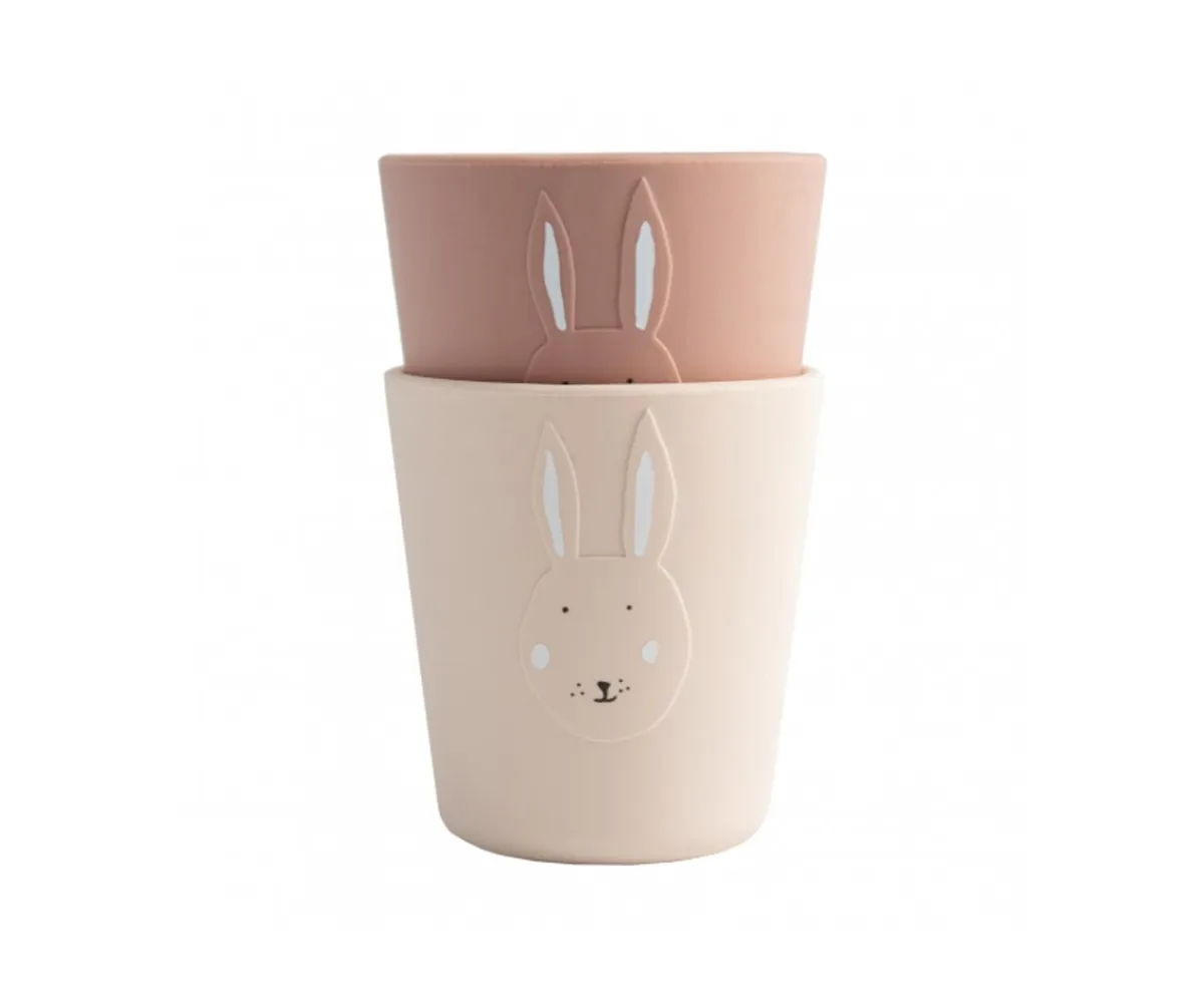 Set de 2 vasos de silicona Trixie Mrs. Rabbit, tienen el tamaño perfecto para las manos más pequeñas. Fácil de apilar para un fácil almacenamiento