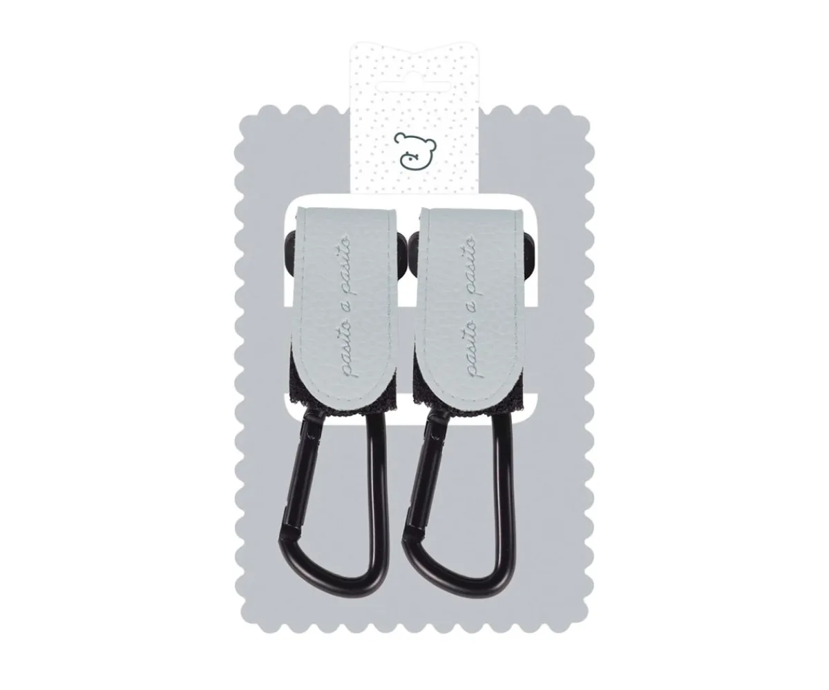 Con estos dos ganchos de la colección Icon Sky de Pasito a pasito, podrás colocar el bolso cambiador de bebé o llevar bolsas adicionales cuando vas a hacer la compra.