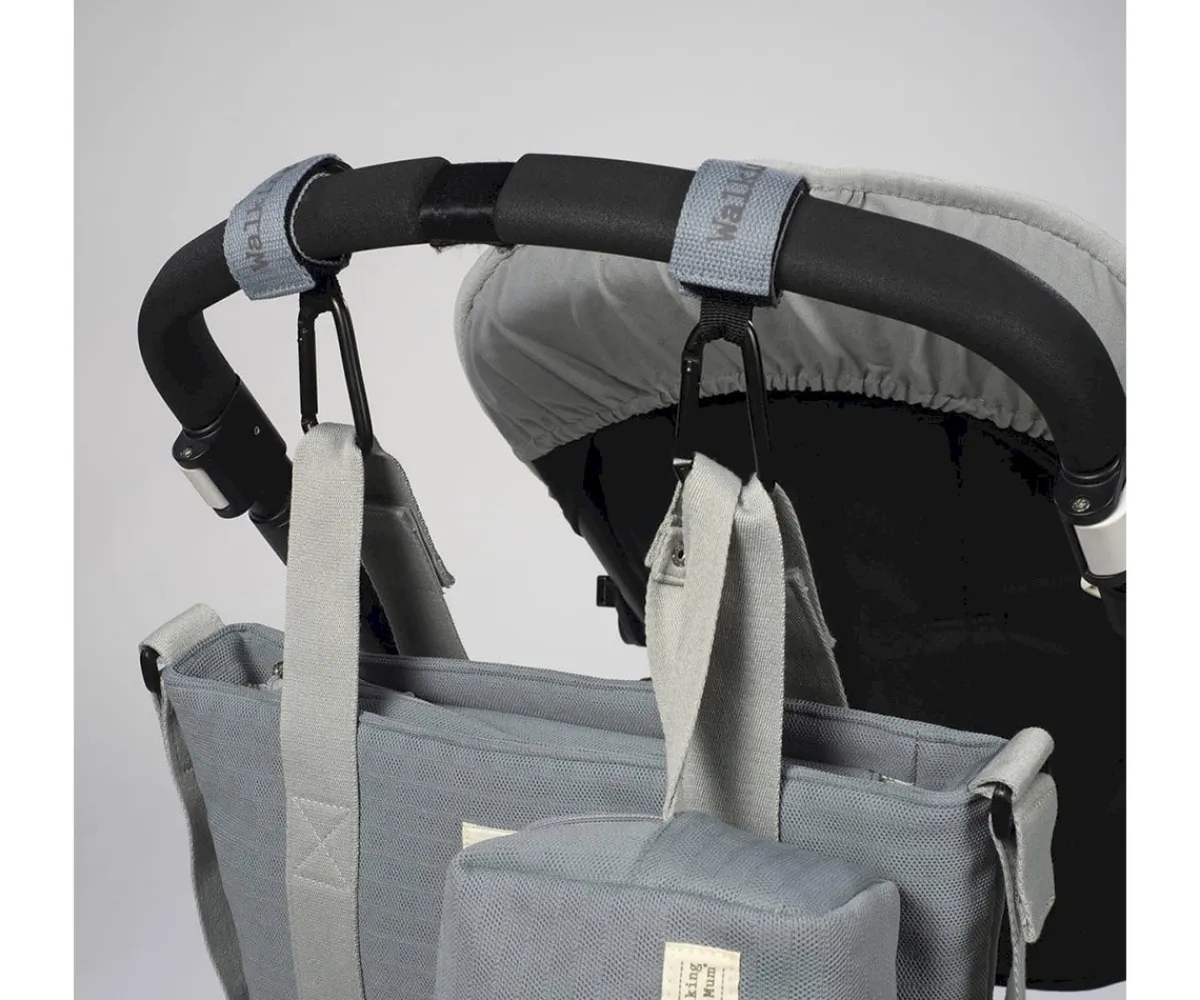 Con estos dos ganchos de , podrás colocar el bolso cambiador de bebé o llevar bolsas adicionales cuando vas a hacer la compra.