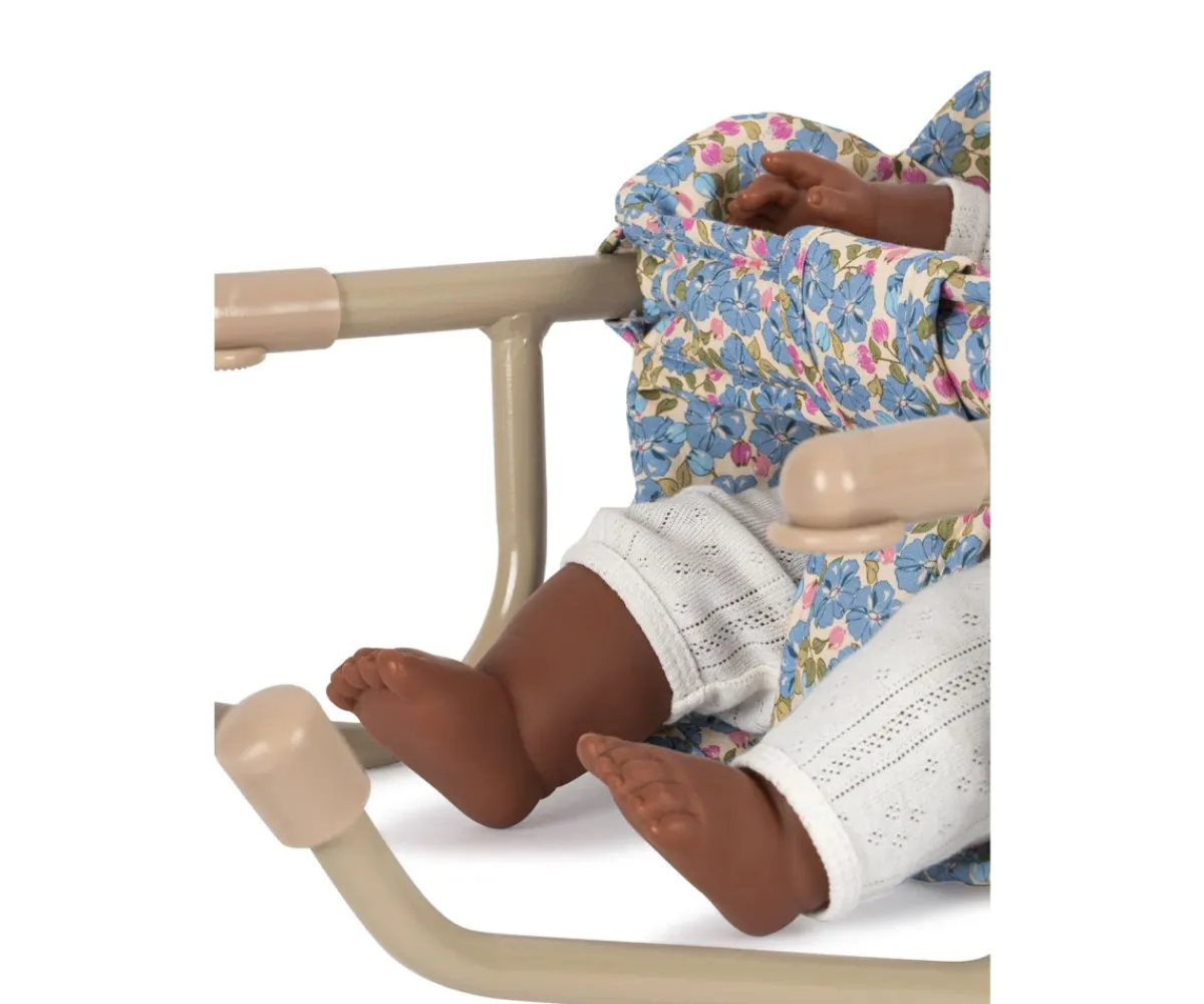 Silla de mesa elevadora para muñecas de la marca Konges Slojd confeccionada en algodón acolchado 100% orgánico con estructura de hierro.