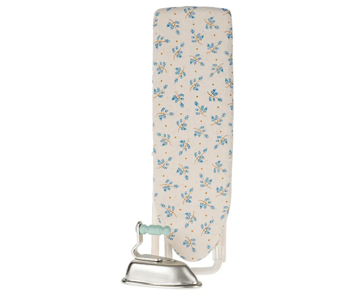 Preciosa plancha y tabla de planchar hecha de metal y recubierta con un tejido exclusivo de Maileg.