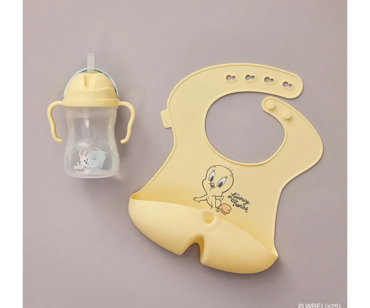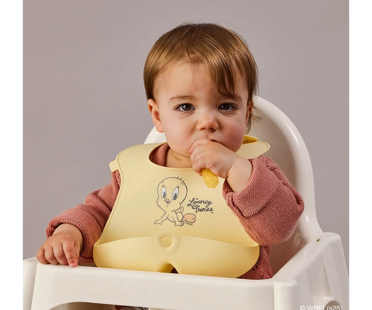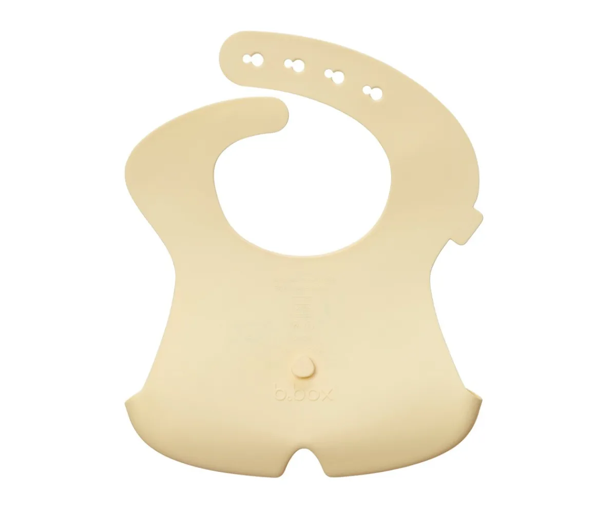 Babero práctico y enrollable de B.Box, cuenta con un bolsillo recogemigas, manteniendo al bebé más limpio, seco y cómodo durante las comidas.