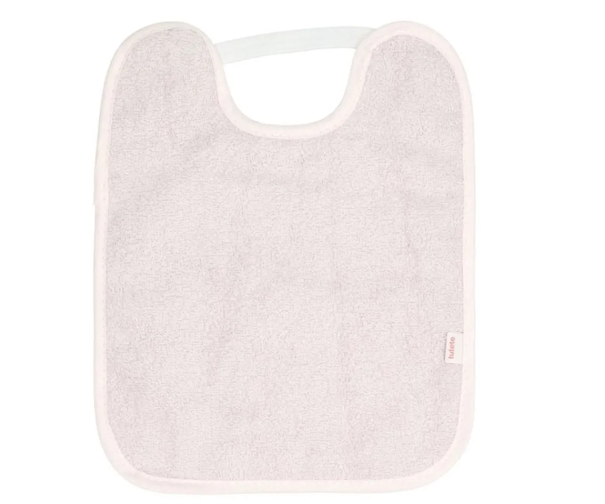 Clásico babero con una cara de toalla de rizo y la otra plástificada para evitar que traspase la comida o los líquidos a la ropa cuando cae sobre ella.
