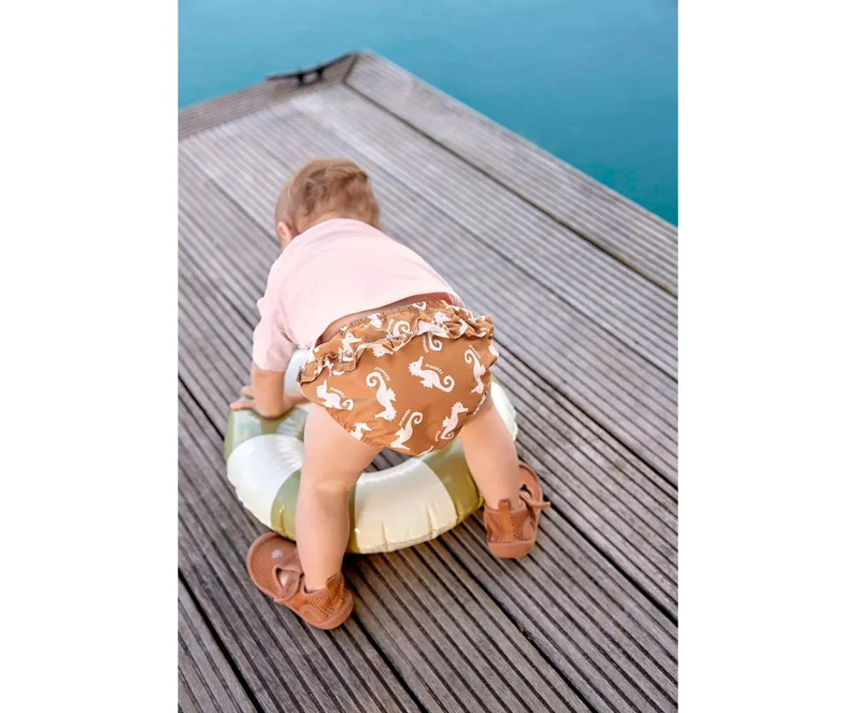 Este pañal bañador impermeable de microfibra con membrana de PU, se caracterizan por un novedoso sistema de forro y relleno absorbente que atrapa la humedad y la transporta hacia afuera para mantener la piel del bebé los más seca posible.