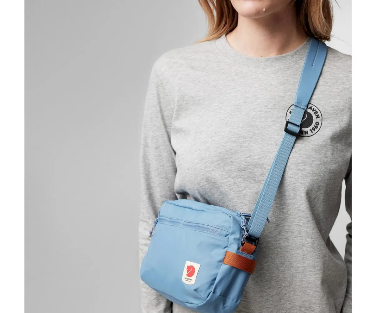 La bandolera High Coast de la marca Fjallraven cuenta con correa cruzada, acolchada y ajustable que se puede quitar y así usarla como neceser, un bolsillo frontal con cremallera y un bolsillo interior con gancho para llaves.