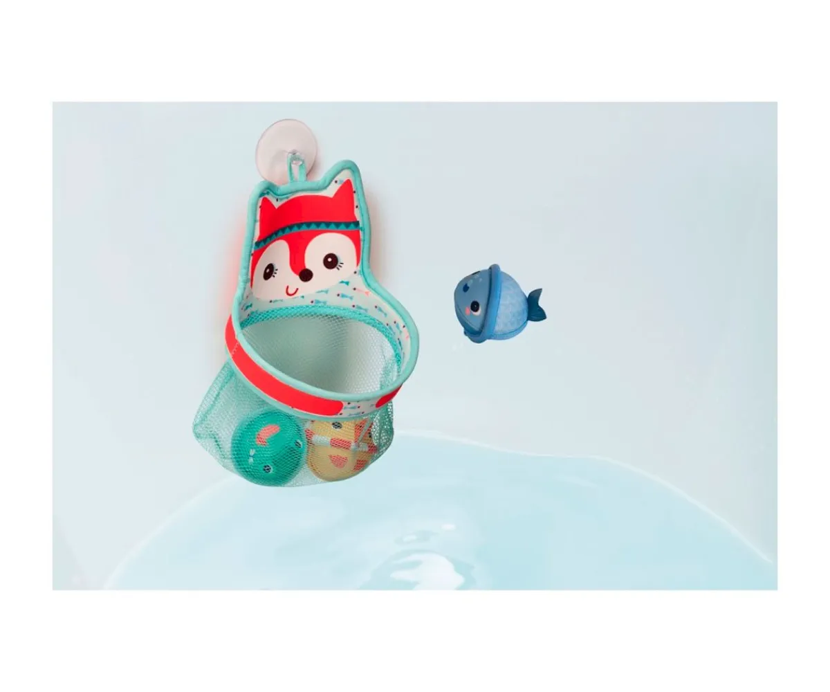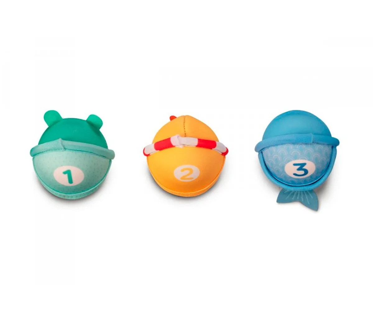 - Incluye: cesta y 3 bolas flotantes con forma de animales