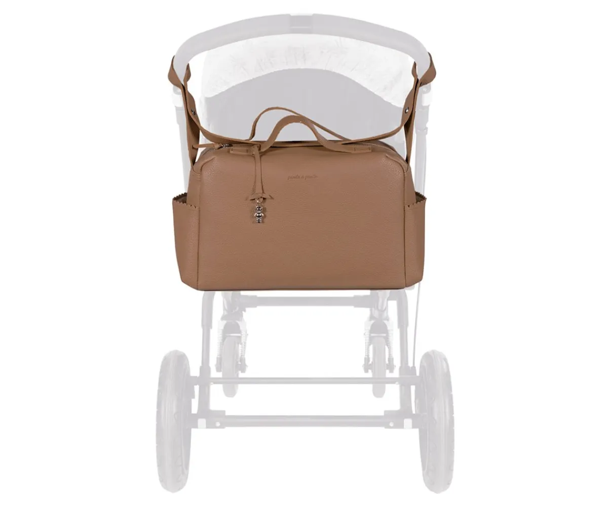 La bolsa canastilla de la colección Icon Caramel de Pasito a Pasito, es una excelente opción para padres que buscan practicidad y elegancia.