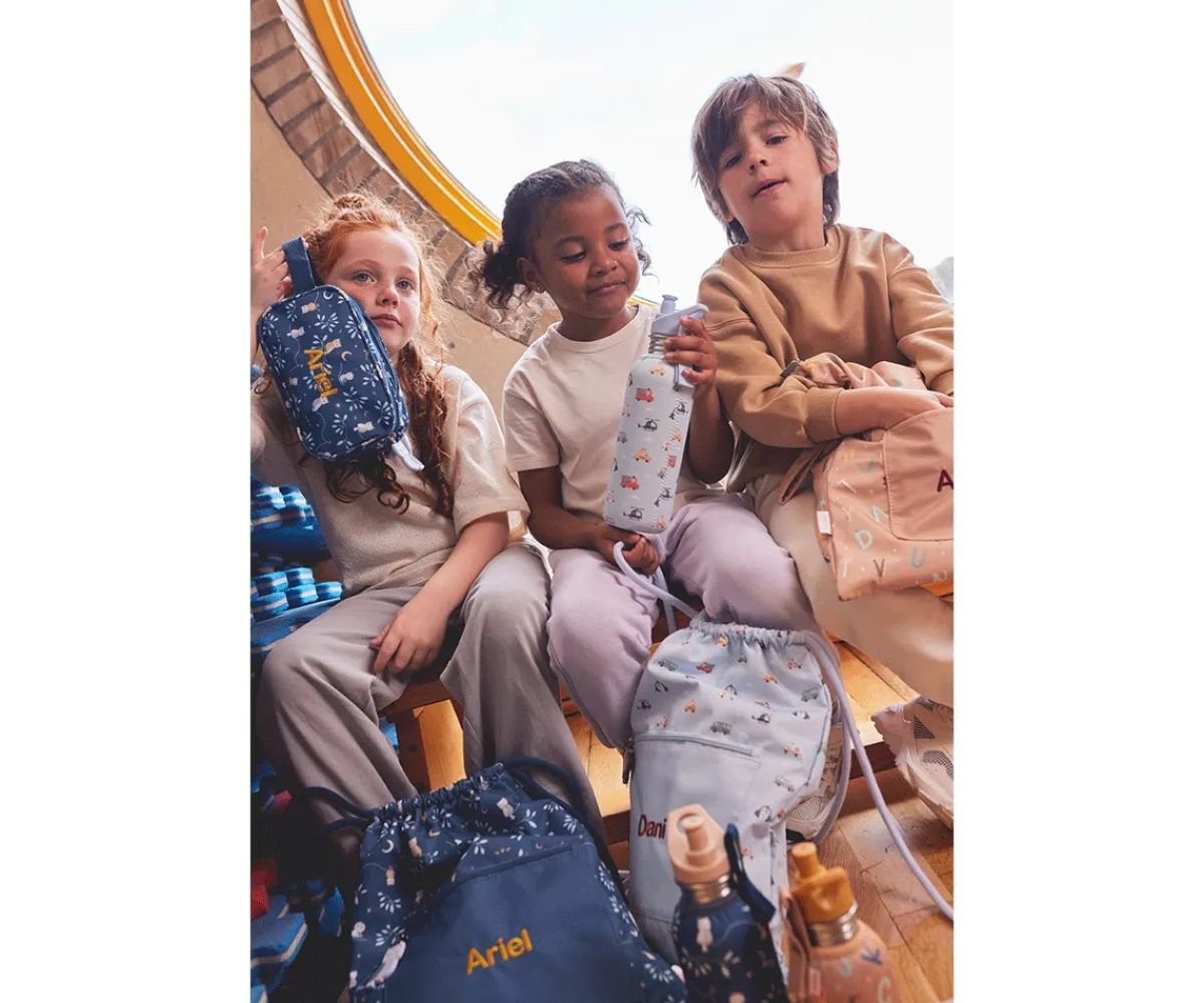Se puede personalizar la funda con el nombre en mayúsculas en el asa o la botella de acero.