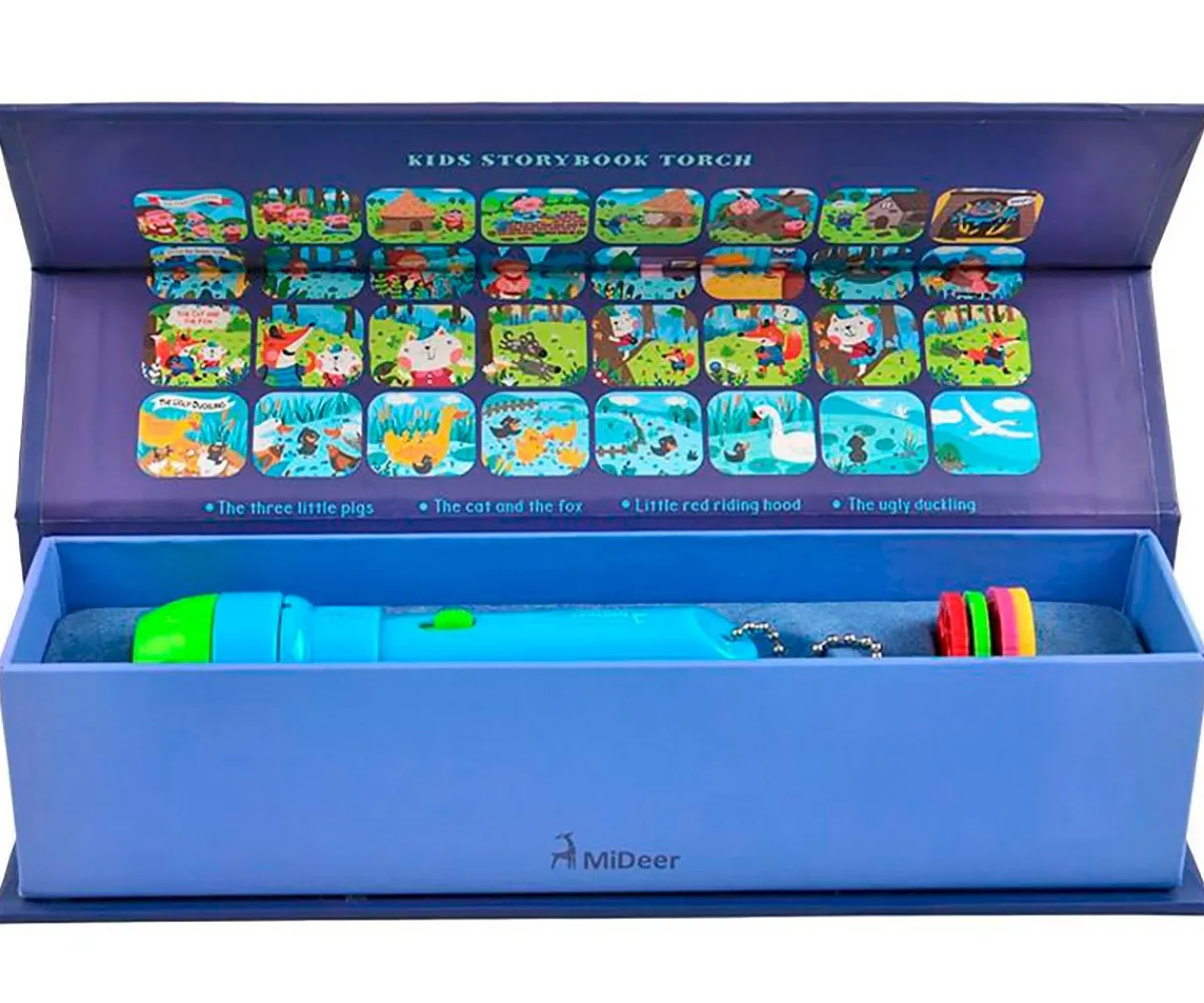 - Se compone de una linterna y 4 cuentos (Los Tres Cerditos, Caperucita Roja, El Patito Feo y El Gato y el Zorro)