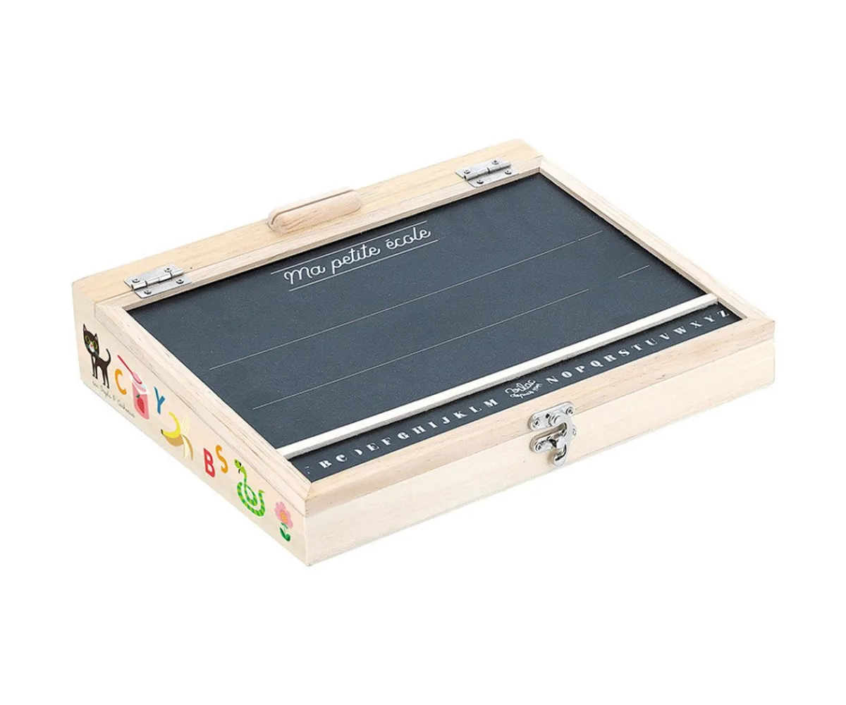 Ilustrado por Ingela P. Arrhenius, este escritorio de aspecto antiguo con pizarra de Vilac, incluye: 47 letras de madera y 23 números, 50 tarjetas para reconstruir palabras en francés e inglés y 30 tarjetas de las primeras operaciones para sumar y restar. Perfecto para jugar solo o con amigos y convertirte en profesor.