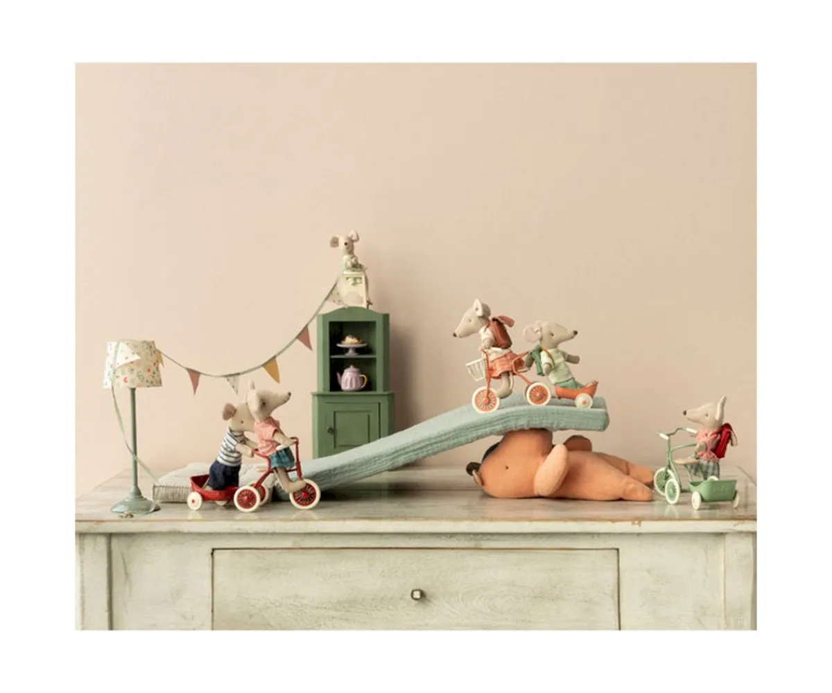 Añade esta cestita trasera al triciclo de tus ratoncitos para que puedan llevar a todas partes sus objetos personales o incluso a un miembro más pequeño de la familia.