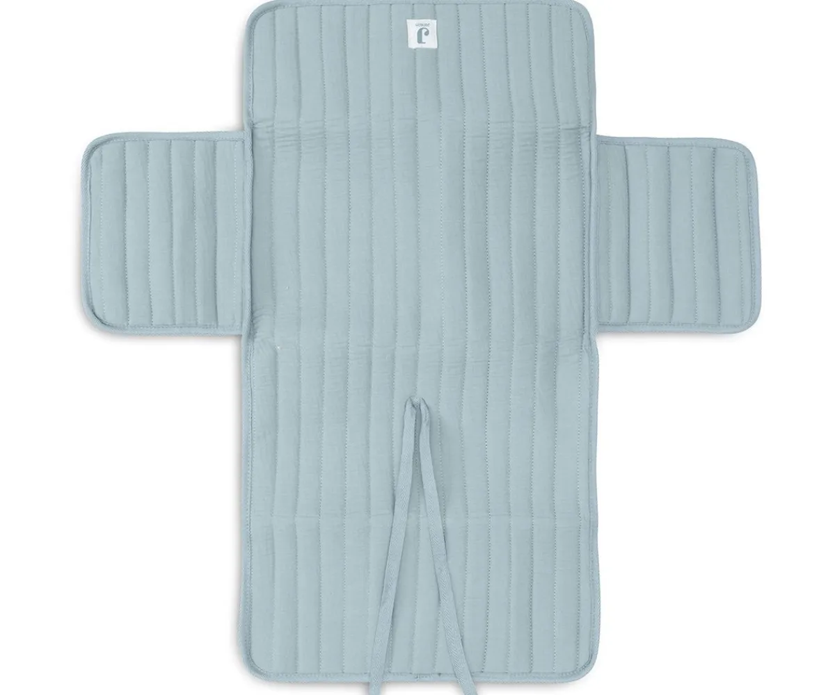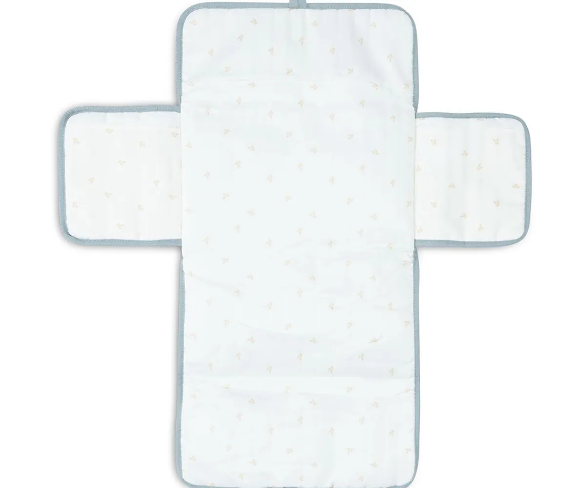 Cambiador de muselina compacto y práctico, ideal para llevar en el bolso. Exterior de tejido hidrófilo suave, interior estampado y cierre con lazo.