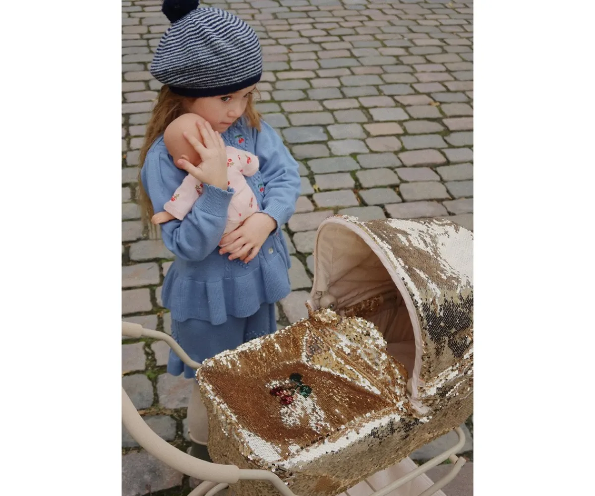 Este carrito de muñecas de Konges Slojd de estilo vintage con su cuatro ruedas grandes ofrece una mayor estabilidad a la hora de pasear a las muñecas.