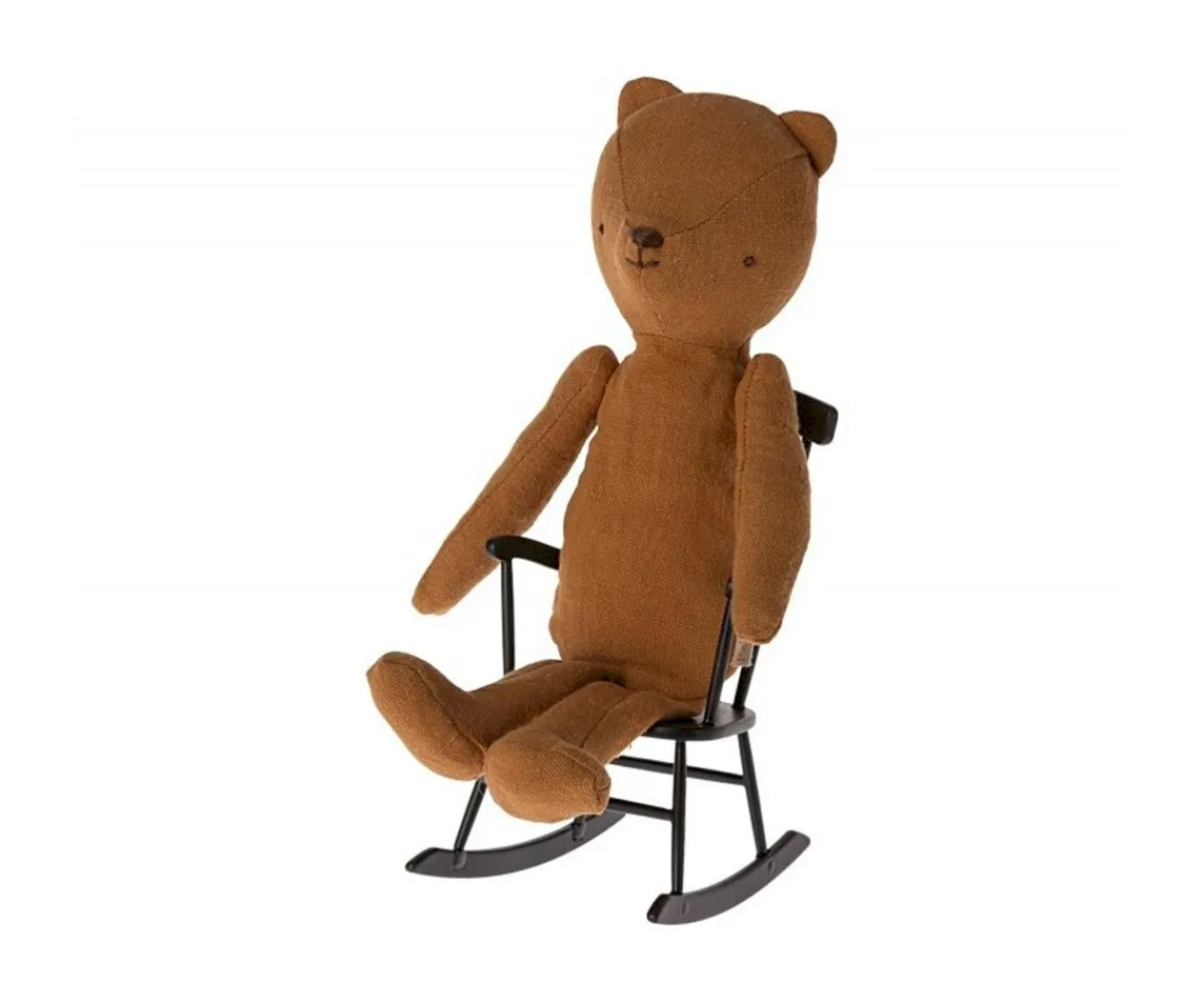 Preciosa mecedora estilo vintage con reposabrazos que se adapta perfectamente a los conejitos y conejos de tamaño 1 y 2, y a la familia de ositos.