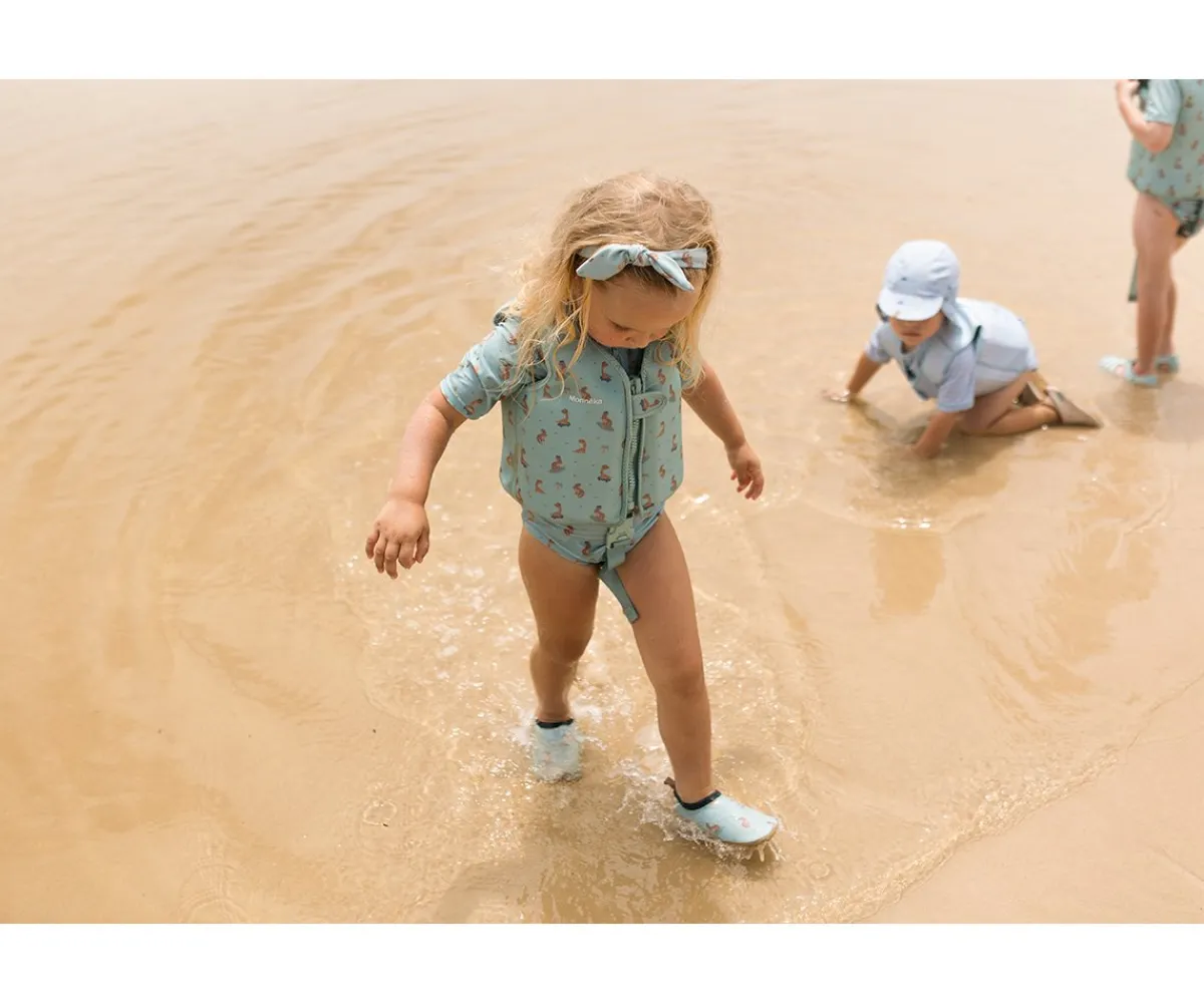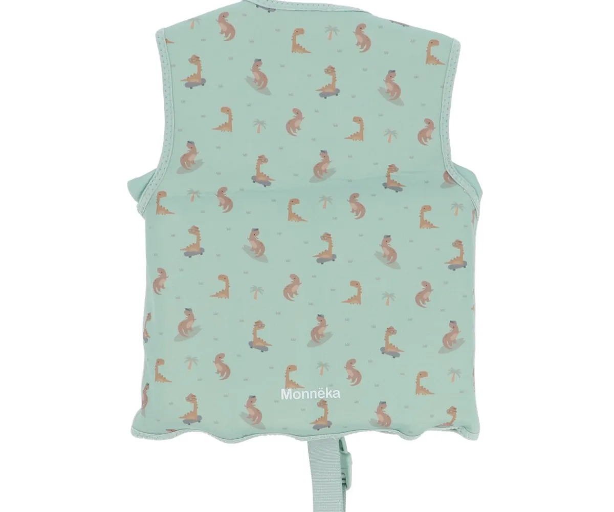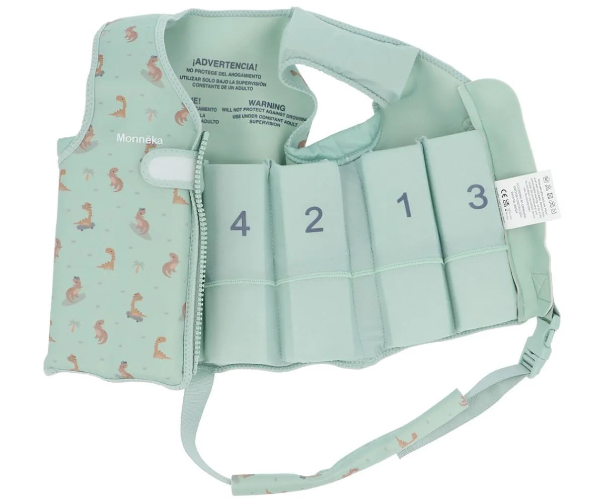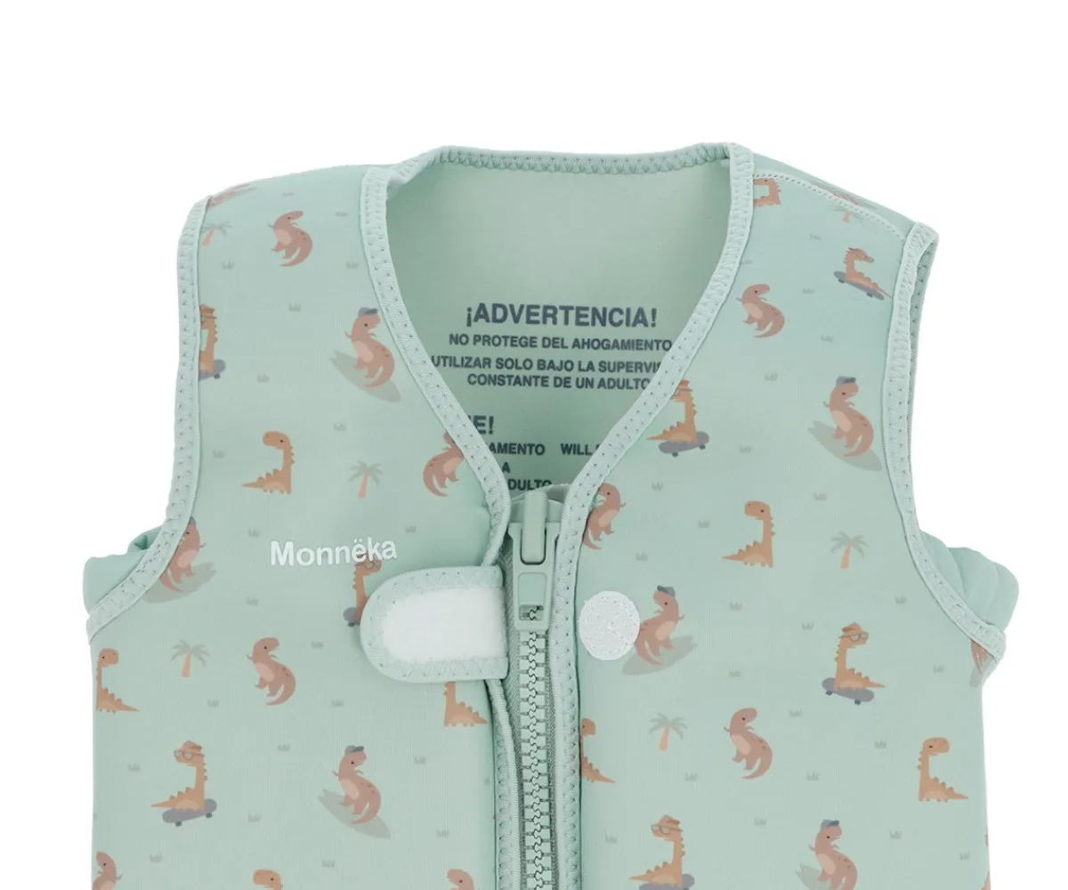 Descubre el adorable chaleco flotador de la colección Cool Dinos que cuenta con una cinta con cierre de seguridad para colocar entre las piernas con el fin de que el chaleco no se salga por la cabeza, en caso de tirarse al agua de manera vertical o cuando, simplemente, está flotando en el agua.Además está protegida con neopreno para evitar rozaduras entre las piernas.