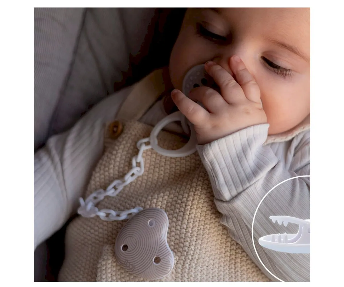 La cadenita para chupete Lovi Harmony está equipada con un práctico clip que permite una fijación estable y segura del chupete a la ropa de los peques. Es la cadenita ideal para evitar que el chupete se pierda o caiga el suelo y se ensucie.