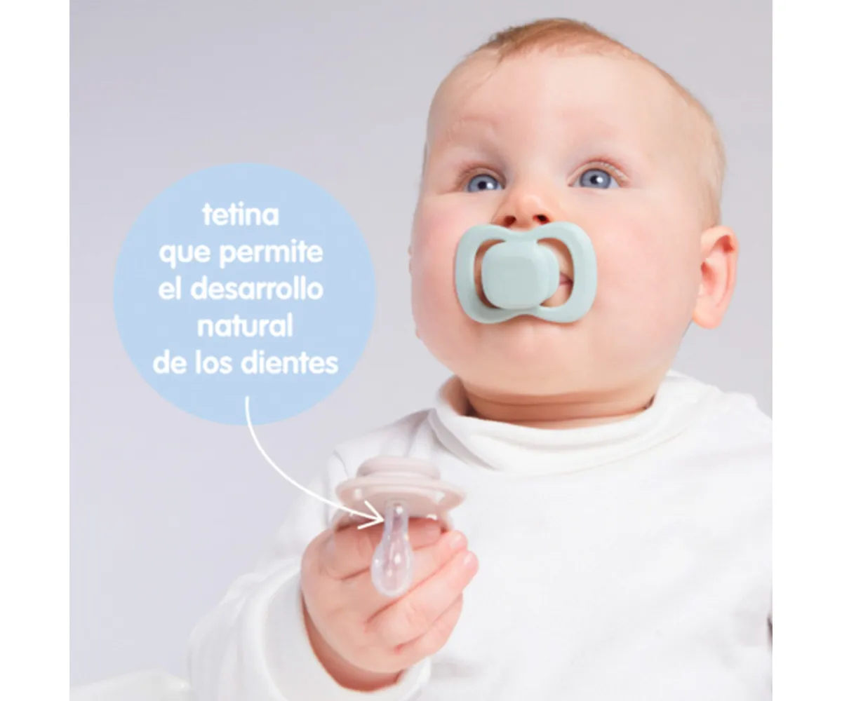 - Tetina fisiológica silicona, permite el desarrollo natural de los dientes