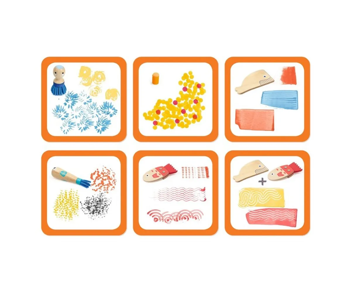 Con este set tu peque podrá realizar creaciones con sus herramientas de madera o esponjas guiado por las tarjetas de instrucciones que incluye o dejando volar su imaginación.