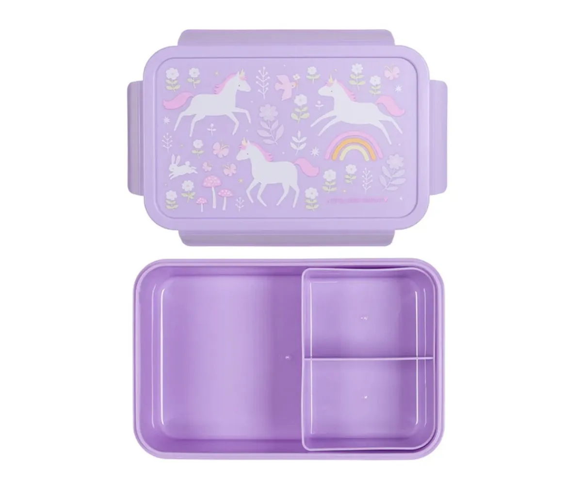 La tapa hermética click & close y el recipiente bento extraíble con dos compartimentos garantizan un almuerzo perfectamente organizado. Una caja ideal para un almuerzo fresco y variado en el colegio o de viaje.